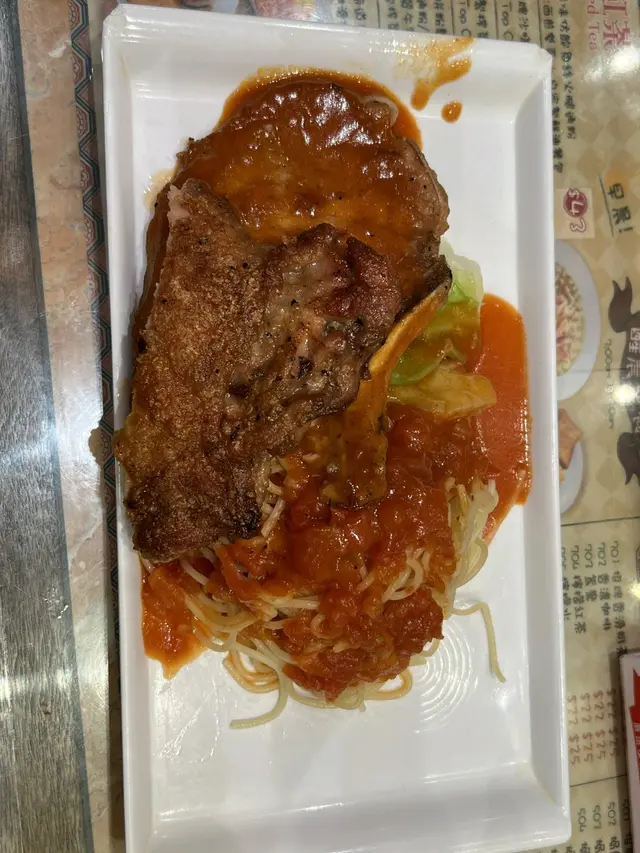 鮮茄焗豬扒飯是一道經典港式美食,豬扒厚實多汁,外層焗得金黃微脆,味道酸甜適中,非常開胃。米飯吸收了茄汁的精華,軟硬適中。菠蘿油則是港式茶餐廳的必試小食,鬆脆的菠蘿包搭配厚厚一片冷凍牛油,熱包的溫度慢慢融化牛油,香味濃郁!紅豆冰就👅普普通通!查看更多