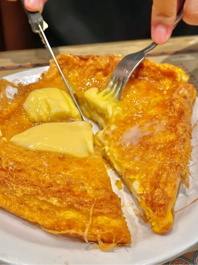 就是这样才叫正宗招牌芝士流心西多士 🥞吐司的余温让黄油逐渐融化,油箱逐渐浸润到土司的每丝纤维中,吃起来很油又很腻很爽番茄猪扒饭 厚重浓稠拉丝的芝士将米饭酱汁番茄充分的融合🍅,让大块的猪扒也吃起来奶香中蕴含着酸甜,更显柔润融合味道比较正宗,但排长队就不值得了查看更多