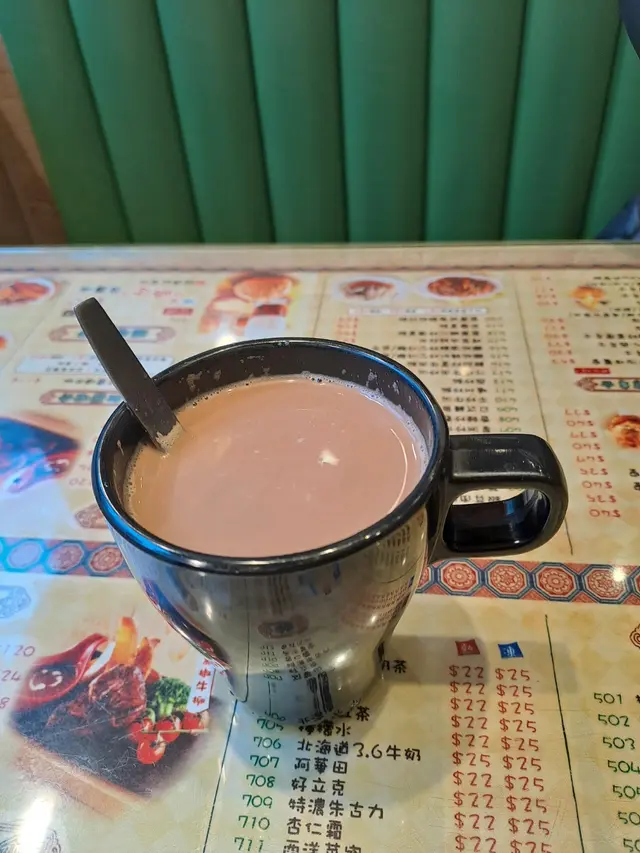 今日個仔返晏,就比佢瞓晏啲然後去食個brunch再返學,紅茶冰室十一點半前仲有早餐,阿仔就叫咗個假鮑魚絲火腿通心粉,配餐包煎雙蛋加杯熱飲,我就懶係健康叫咗個北海道牛奶藜麥粥,配蛋治熱奶茶。呢個藜麥粥嘅口感認真麻麻,唔知點解叫北海道牛奶,唔覺得有加入牛奶去煮,完全冇味道,上枱跟咗一杯仔煉奶,本來都係想食健康啲但再加煉奶就完全違背咗呢個原意但冇味真係好難食,好彩件蛋治十分出色,奶茶亦都唔錯。下次都係叫返沙爹牛肉麵或者通心粉或者佢嘅全日早餐。查看更多