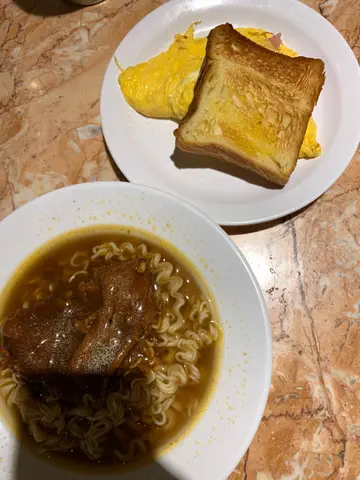 红茶冰室喺一间以传统茶餐厅风格经营嘅地方,我食左佢哋嘅早餐,包括沙嗲牛肉面、榨菜肉丝米粉、牛油餐包同剪双蛋。餐厅氛围朴实,系传统茶餐厅既摆设。沙嗲牛肉面个汤底够浓郁沙嗲味,牛肉又多弹牙同新鲜。榨菜肉丝米粉清爽可口,榨菜酸辣开胃。牛油餐包香脆酥软,剪双蛋煎得恰到好处,蛋黄流心,又唔会太过油。早餐黎讲,性价比高,又唔会太贵,又食到咁既质素如果系附近番工既朋友,建议可以食个靓早餐先行去番工,醒个神先,哈哈…查看更多