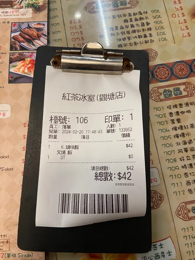 還好啦去觀塘上堂之前,食啲嘢先,見網上話呢間紅茶冰室都幾唔錯,就試下。食後感:都算係咁啦!先講食物,下晝5:48分仲有下午茶餐,叫咗個$42既單拼叉燒飯,飯🍚唔會太腍,ok的👌🏻叉燒都算幾好食,半肥瘦,仲有條菜。$42黎講真係唔差。至於服務方面,就真係睇人。舉手落單,一個人見到扮見唔到,另外一個見到啦,話「講呀!」😅但檸茶來的那個侍應又有禮貌,所以真係有好有唔好。收錢的姐姐則一邊睇電話一邊收錢。整體來講都可以既。查看更多