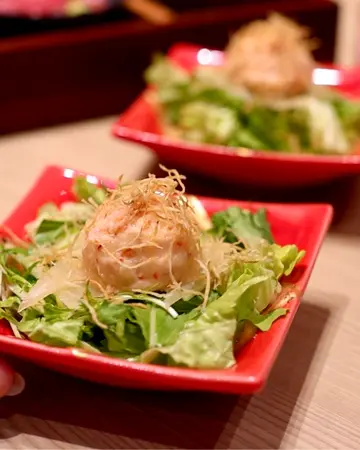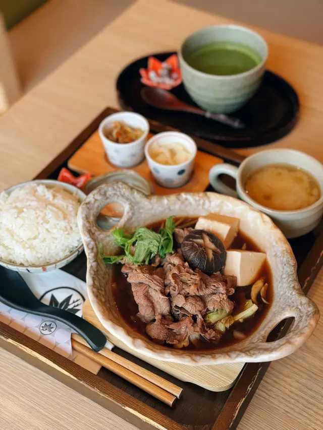 荃湾红叶茶屋的二人前套餐绝对是高质素的日式料理。餐前的龙虾沙律清爽开胃,龙虾肉鲜甜弹牙,配上沙律酱汁恰到好处。海鲜刺身四点成入,包括吞拿鱼、三文鱼等,切片厚薄适中,鱼味鲜美,配上日本米饭和面豉汤,简单却令人满足。我们加了 $58 升级成豪华和牛寿喜烧,绝对值得。和牛油脂分布均匀,入口即化,配上寿喜烧酱汁和蔬菜,香气扑鼻,令人回味。另外,油渍赤虾手卷也令人惊喜,虾肉鲜甜,油渍处理令味道更有层次。饮品方面,雪糕白玉抹茶Latte香浓滑顺,白玉烟韧,甜度适中,而谦仓红叶茶屋抹茶则茶味浓郁,适合喜欢原味抹茶的朋友。甜品方面,黑蜜抹茶蕨饼口感柔软,黑蜜香甜不腻; 抹茶 Tiramisu则是西式甜品的点睛之笔,口感细腻,与整体日式餐点形成有趣对比。整体而言,红叶茶屋的餐点不但味道出色,摆盘亦见心思,服务亲切,是一次愉快的用餐体验。适合情侣、朋友或家庭聚餐,值得再访。…查看更多