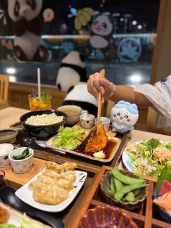 红叶茶屋的木系风格,桌子搭配榻榻米座位,营造日式的雅致。大窗的户外景色一览无遗,欣赏繁华的城市夜景,窗边的可爱熊猫装饰,增添亲和力,感到愉快轻松。红叶茶屋二人前 $488二人餐包含了新鲜刺身盛盒、主食及别致甜点,色彩鲜艳,让人期待。龙虾沙律爽脆的蔬菜沙律,配上鲜嫩的龙虾肉,惹味的他他酱,带来清新口感,滋味开胃。红叶四点盛刺身盛盒有带子、三文鱼及吞拿鱼刺身,新鲜厚切,三文鱼油润可口,吞拿鱼油脂丰富,带子滑溜口感极佳。唐扬炸虾香气四溢,炸至甘香酥脆。芥末八爪鱼充满弹性,微辣带来惊喜。清新的枝豆,带一抹绿意。吉列猪扒&广岛蚝香炸的吉列猪扒,热呼呼,口感松化,生菜丝配上酸甜沙律酱,十分减腻。搭配广岛蚝,咬开肥美的蚝肉,散发热烫的肉汁,鲜甜可口,让人回味。照烧三文鱼配清汤乌冬 (加$10)三文鱼表面油光亮泽,鱼皮脆卜卜,肉身保持鲜嫩多汁,配上温热的清汤乌冬,口感柔和,十分暖笠笠。芒果百香果茶清爽的饮品,酸甜适中,芒果与百香果果香浓郁,清爽热带风情,美味清爽。雪糕牛奶抹茶纯滑的牛奶雪糕,拌匀香醇的抹茶,入口冰凉滑顺,抹茶的微苦与甜美平衡,带来纯滑享受。红叶茶屋抹茶提拉米苏 (加$10)抹茶tiramisu铺满抹茶粉,质感轻盈醇厚,丰厚的抹茶香,充满和风特色。镰仓红叶茶屋抹茶白玉渍柔软烟韧的的白玉,配上绵蓉红豆,沁出红豆的甜香,倒上抹茶黑糖浆,增添抹茶香气,口感细腻,十分陶醉。炸饺子 $38外皮脆卜卜,包裹著多汁的馅料,是不可错过的小吃。…查看更多