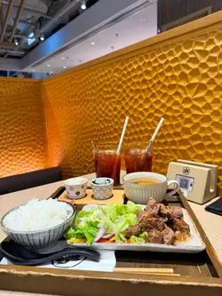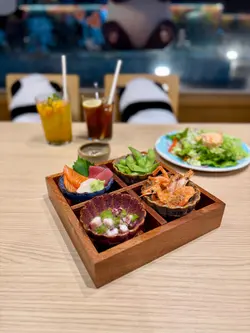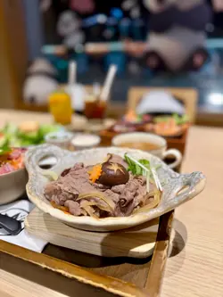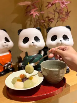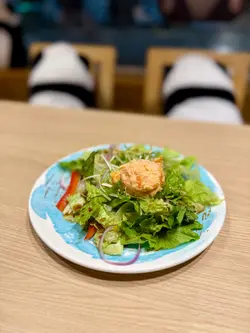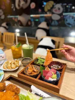 紅葉茶屋的木系風格,桌子搭配榻榻米座位,營造日式的雅致。大窗的戶外景色一覽無遺,欣賞繁華的城市夜景,窗邊的可愛熊貓裝飾,增添親和力,感到愉快輕鬆。紅葉茶屋二人前 $488二人餐包含了新鮮刺身盛盒、主食及別緻甜點,色彩鮮艷,讓人期待。龍蝦沙律爽脆的蔬菜沙律,配上鮮嫩的龍蝦肉,惹味的他他醬,帶來清新口感,滋味開胃。紅葉四點盛刺身盛盒有帶子、三文魚及吞拿魚刺身,新鮮厚切,三文魚油潤可口,吞拿魚油脂豐富,帶子滑溜口感極佳。唐揚炸蝦香氣四溢,炸至甘香酥脆。芥末八爪魚充滿彈性,微辣帶來驚喜。清新的枝豆,帶一抹綠意。吉列豬扒&廣島蠔香炸的吉列豬扒,熱呼呼,口感鬆化,生菜絲配上酸甜沙律醬,十分減膩。搭配廣島蠔,咬開肥美的蠔肉,散發熱燙的肉汁,鮮甜可口,讓人回味。照燒三文魚配清湯烏冬 (加$10)三文魚表面油光亮澤,魚皮脆卜卜,肉身保持鮮嫩多汁,配上溫熱的清湯烏冬,口感柔和,十分暖笠笠。芒果百香果茶清爽的飲品,酸甜適中,芒果與百香果果香濃郁,清爽熱帶風情,美味清爽。雪糕牛奶抹茶純滑的牛奶雪糕,拌勻香醇的抹茶,入口冰涼滑順,抹茶的微苦與甜美平衡,帶來純滑享受。紅葉茶屋抹茶提拉米蘇 (加$10)抹茶tiramisu鋪滿抹茶粉,質感輕盈醇厚,豐厚的抹茶香,充滿和風特色。鎌倉紅葉茶屋抹茶白玉漬柔軟煙韌的的白玉,配上綿蓉紅豆,沁出紅豆的甜香,倒上抹茶黑糖漿,增添抹茶香氣,口感細膩,十分陶醉。炸餃子 $38外皮脆卜卜,包裹著多汁的餡料,是不可錯過的小吃。…查看更多