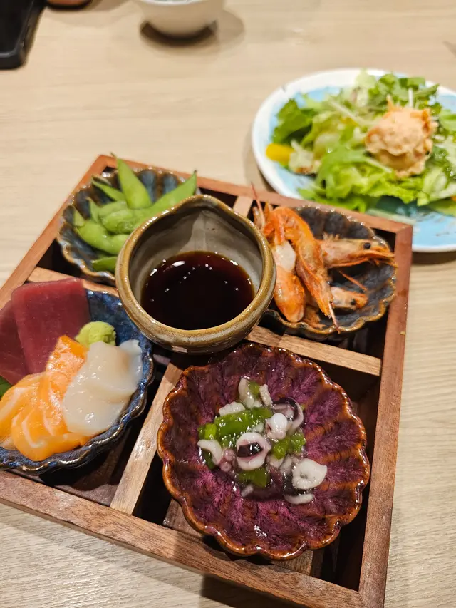 呢晚同朋友一齊嚟咗呢間喺荃灣西商場裏邊嘅日式餐廳食晚餐🤣もみじ茶屋 係嚟自日本🇯🇵鎌倉,喺鎌倉同横浜都有店舖🤩;鎌倉我應該去過兩次而横浜我就去過N次因為嗰度有展覽館出差嘅時候我會住東京日日由東京坐車去横浜展覽館工作🤣,不過我就從未去過喺鎌倉同埋横浜嘅 もみじ茶屋 🤣$148「海鮮四色茶漬飯」:海鮮包括有吞拿魚赤身、甜蝦、三文魚籽、三文魚,就咁配白飯食又得,加啲wasabi 同埋醬油撈飯食都得,加蝦湯同埋香蔥做茶漬飯食亦都得,得咗🤣;定食仲有兩小碟漬物🤩跟餐加 $21「香橙梳打咖啡」:大大杯甜甜哋😆跟餐加 $35 「旬之野菜」:材料主要有椰菜仲有少少洋蔥絲、芽菜、雜菌、芝麻🤩$38「胡麻凍蕃茄」:蕃茄配胡麻醬幾得意😆$68「鹽燒鯖魚」:呢個係小食,鯖魚唔大唔細有兩件,燒得幾香口😆$88「風味魷魚(原條)」:魷魚🦑肉質幾爽滑簡簡單單煮熟加啲鹽已經夠鮮味🤣唔係好夠喉咁叫多個 $78「燒花魚一夜干」:呢個都係小食,都係有兩片唔大唔細嘅魚,魚肉有啲啲鹹鮮味🤣$28「枝豆」:簡簡單單😆$52「鎌倉紅葉茶屋抹茶白玉」:呢個甜品配一小碗「抹茶」,呢度嘅茶好似係嚟自「森半 morihan (創業 1836年)」,「森半」歷史悠久,有製作各種類型唔同嘅茶;白玉就圓轆轆細細粒都幾Kawaii 🤩,除咗白玉又有綠玉估計係加咗抹茶🤣;白玉係由白玉粉做成,白玉粉係由もち米做成,即係嗰啲喺日本🇯🇵過年嘅時候食好煙韌mochi 糕🤩;呢度嘅白玉都做得幾煙靭兼完全唔甜,不過碗中間有甜甜哋嘅あんこ紅豆蓉,撈埋一齊食幾好味🤩;如果仲覺得唔夠甜,有一小瓶 好甜嘅抹茶糖漿可以再加上去🤩;「抹茶🍵」就非常濃郁兼顏色碧綠,同甜點一齊食,更加突顯到 抹茶🍵嘅苦味澀味同鮮味🤩…查看更多