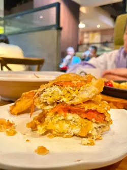 最近放工后,同屋企人去咗深水埗「红葱头」食晚饭,依度成日推出好多唔同套餐选择,保证你一定充满新鲜感。*此餐厅收取全单10%服务费。铁板美国极上无骨猪扒(单点$128),表面铺有黑椒,猪扒肉质软腍,食落啖啖肉,略嫌猪毛没有去除干净,而令猪扒表面口感比较粗糙,配以自家制酱汁食用,肉味更加突出;薯菜包括有洋葱、椰菜、车厘茄、粟米、粗切薯条,配以番茄酱。软壳蟹牛肝菌意粉(单点$95),软壳蟹好大只,足以比成年人手掌更加长,蟹膏非常多,味道甘香,蟹肉味道鲜甜,炸衣口感薄脆;意粉口感软硬适中,配以牛肝菌酱汁食用,食落菇菌味浓,配料包括有鸿喜菇、彩椒、茄子。铁板上的蜗牛(单点$50),焗田螺食落好新鲜,配以法式香草牛油食用,味道正宗,薯容口感绵密,配以蒜蓉汁食用,味道更佳。意式炸乌贼(单点$48),即叫即炸,口感外酥脆内爽弹,配以柠檬汁、柠檬沙律汁食用,味道清爽。餐汤(跟餐$0),罗宋汤,内有番茄、椰菜、西芹,味道酸辣。牛油法包(跟餐$0),蒜香牛油法包,食落好香口。是日沙律(跟餐$25),内有红毛生菜、罗马生菜、苦菊、车厘茄、粟米,配以焙煎芝麻酱食用,味道清新。热蔷薇之恋(跟餐$16),柚子蜜玫瑰花茶,饮落花香、果香兼备。热柠檬红茶(跟餐$0),茶味浓香,味道酸溜。…查看更多
