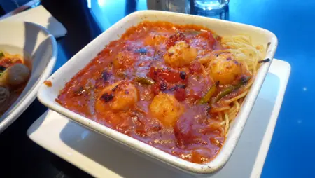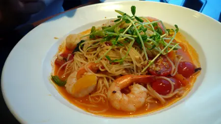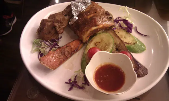在星期五的晚上,來到了紅螞蟻吃夜宵,其中一個挑紅螞蟻的原因是營業時間夠晚,星期五營業至凌晨12時半,last order是12時,還真不易找到營業至那麼晚的餐廳。也許真忘了有多久沒有吃過夜宵了,畢竟夜宵也真夠邪惡,還是少吃為妙吧。其中一個豬軟骨湯麵: 跟友人各點了一個湯麵, 可自選湯底和麵質,我選的是椰香海鮮辣湯,配的是髮絲麵, 每位盛惠$40,也是個合理的價錢。麵質似是金絲麵,是金黃色幼身的,起初是爽身的,後期有點泡腍了。湯底是比想像中的要淡身,沒甚麼椰香,也沒甚麼辣味;豬軟骨的肉身部分是出色的,沒柴皮,亦夠入味,但敗筆是筋的部分是爽口的,跟我喜歡的軟化了的筋真有很大的差異。醬燒牛脷: 原本要點的是薯蓉田螺,在餐牌上畫了推薦的字眼,但已售罄了,於是便退而求其次,點了牛脷,正因沒有點到皇牌牛脷飯,就點個牛脷小吃好了,一分是有兩條牛脷的,賣相相當嚇人,是兩大塊的,在用刀叉切開牛脷時,已覺牛脷是很軟腍的,幾乎不用怎力切的,牛咬下去立時感到牛脷的肉質很腍身而富有咬口,肉香之餘,醬汁甜香亦是大加分的點,好吃。在此感謝C小姐的請客!平均消費: $60…查看更多