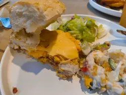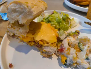 第一次帮衬呢间红豆冰室, 下午茶多选择最后叫咗个咸牛肉汉堡包跟沙律, 冻柠茶少甜少冰真心好难食, 汉堡包好烘, 冻嘅,汉堡包入面块芝士, 一块正方形,冇熔, 咸牛肉同个蛋都只系暖, 极度难食, 冻柠茶小冰, 啲冰都有半杯,下次唔会再嚟, 应该话系永远唔会再嚟
