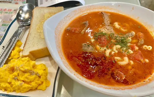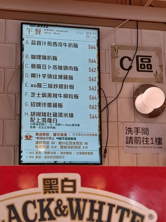 城門水塘行完山,坐小巴落到荃灣,嚟咗紅豆食午餐,嗌咗一個午餐係咖喱牛肉飯,咖喱都係一般茶餐廳嘅味道,但係都夠香滑有咖喱味,個午餐跟咗一個羅宋湯味道一般啦,下午茶餐叫咗一個乾炒牛河及焗芝士鮮茄豬扒飯,乾牛河炒得好夠透好夠熱,灑了一啲芝麻,賣相好睇好香又好食;個焗豬扒飯焗得好透,炒底飯啲雞蛋都好多,豬扒夠厚;飲品方便兩杯凍檸茶就普通啲,而杯熱茶走就好香滑,整體嚟講都算抵食,憑單買佢個麵包外賣仲可以減兩蚊,可以一試。…查看更多