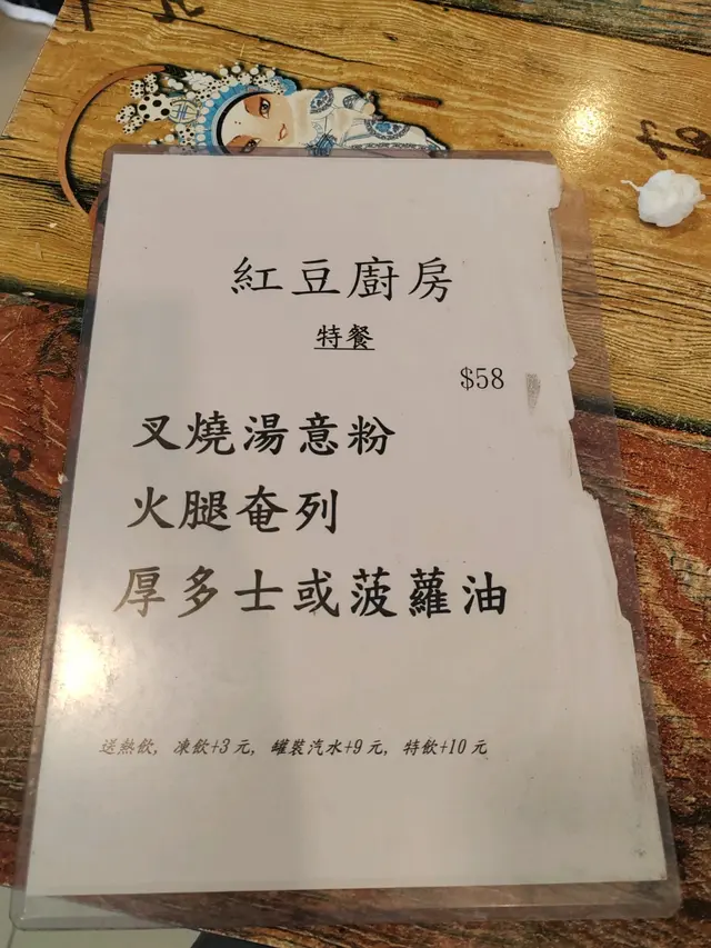 位于元朗尔峦嘅红豆厨房 系我几乎每星期都会帮衬一次嘅冰室 通常我都系早餐时间去 每次我都会点同样嘅食物 因为佢嘅鲜牛肉通粉 系非常之好味 我曾经问过店员点解佢哋嘅鲜牛肉 会咁有牛肉味 佢话佢哋系用新鲜嘅牛肉所以啖啖都有牛肉 肉汁嘅味道 另外佢嘅早餐 仲会配上 汉堡扒 双蛋同埋多士 而多士可以选择奶酱多 奶油多 多样嘢畀你拣 每次我都会叫奶酱多 原来奶酱多 加通粉早餐 真系非常好味㗎 另外好值得一提嘅 系佢嘅咖啡奶茶 都系非常之好饮嘅 而且以咁优美嘅环境 大概40蚊就可以食到呢一个咁丰富嘅早餐 好值得去一次 不过呢个地方唯一嘅缺点 就系交通唔系太方便 通常都要揸车去 如果唔系就要喺元朗站 再转巴士或者小巴过去啦 …查看更多