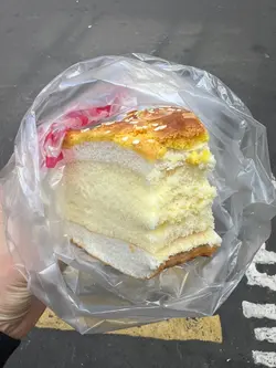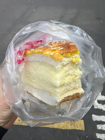 每次遇到面包蛋糕都要试,因为这是硕果仅存不是每间面包店都有的面包。今早行经,竟然遇上,立刻买来一试,蛋糕湿润,带点日式蛋糕色彩。菠萝包皮的包就不觉得很特别。三个形切割,所以面包及蛋糕比例是1:2。 整体来说,比较似工厂做的机器面包, 不太似传统手工面包。