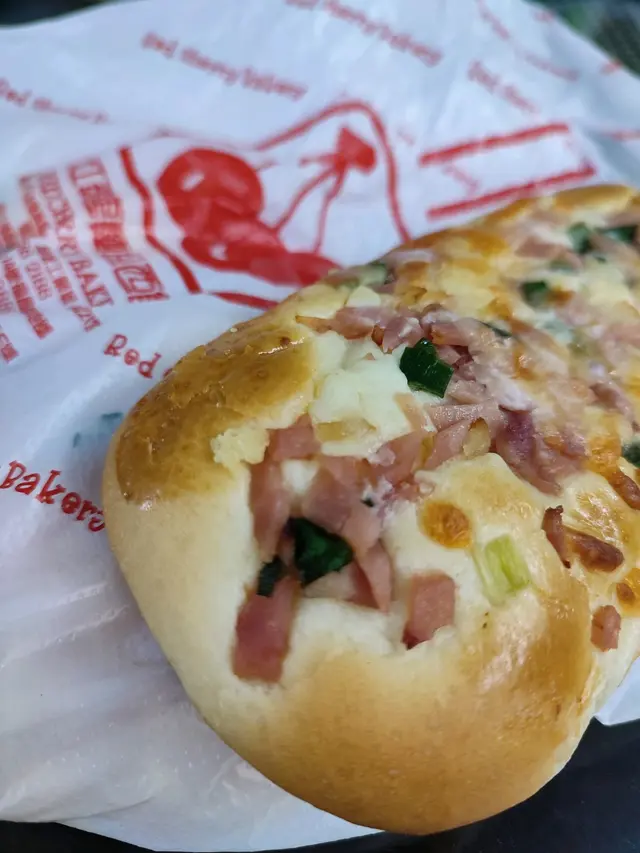 又要為明早不用上班而準備輕盈早餐,路經深水埗紅車厘分店,就買了兩個香葱芝士火腿包,麵包名字與實物相符,香葱與火腿舖滿包面,經焗爐加熱後芝士香味已滲透麵包內外, 如再配一杯熱茶已是滿足的早餐了。查看更多