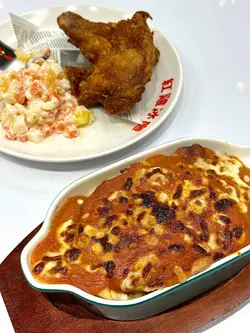 尖沙咀隐世茶记|红鸡冰厅呢餐直接食到我饱到癫🤤🔥 琴日夜晚冲去尖沙咀呢间「红鸡冰厅」,本来净系想随便hea餐tea,点知成餐劲过瘾,食到个肚凸凸都仲想食多啲!🤰🏻 一坐低个眼镜哥哥已经笑住行过嚟,态度超nice,推介menu𠮶阵仲会讲边样系近期最hit嘅款,记单又快手,全程贴心到痹,夜晚嚟呢度食嘢连心情都变好晒💯! 今次叫咗几样招牌嘢,每款都惊喜满满:✅ 鸡脾套餐鸡脾炸到外层脆卜卜,咬开入面juicy到汁都biu出嚟🍗!有得拣沙律或者薯条或者春卷或者薯饼,薯饼香口松化,配埋冻红豆冰,个甜度啱啱好,消暑又够晒爽~ ✅ 百搭 卤水鸡翼套餐卤水鸡翼卤得超入味,连骨头都想吮埋晒啲汁🤤!沙律新鲜脆嫩,冻柠檬利宾纳够晒refreshing,呢个set真系抵到无朋友! ✅ 焗菠萝猪扒饭套餐菠萝甜酸开胃,猪扒厚身又juicy,焗到个cheese微微焦香,捞埋白饭食真系停唔到口🍍🧀! ✅ 铁板什扒套餐呢个真系「大件夹抵食」嘅天花板!火腿+肠仔+烟肉+肉眼扒+鸡扒堆到满泻,铁板上台仲「滋啦」声响,肉质嫩到唔洗用力咬,配埋蒜茸汁简直系肉食兽嘅福音🥩!仲跟嘢饮跟汤跟埋丹麦多士,叫左龙凤七喜,中汤料多到似足老火靓汤,饮完好暖身~ 总结:呢间红鸡冰厅真系尖沙咀隐世宝藏!食物水准高、份量劲足,仲有个眼镜哥哥service咁好,夜晚嚟hea餐真系chill到痹😎!一定要试埋佢哋个丹麦多士,又系另一个惊喜~ …查看更多