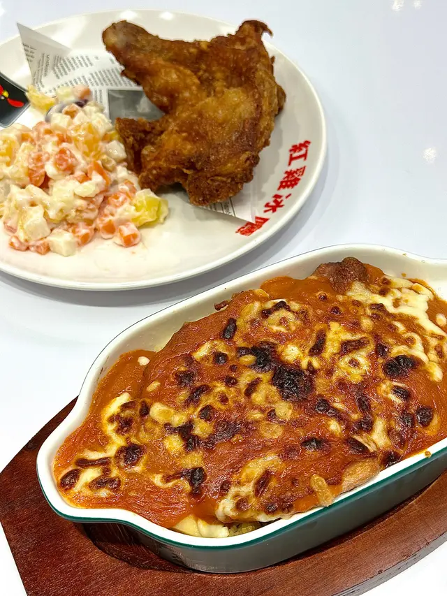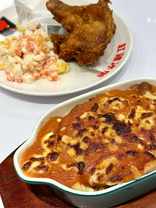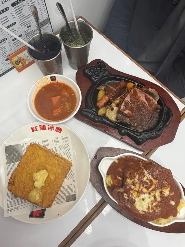 尖沙咀隱世茶記|紅雞冰廳呢餐直接食到我飽到癲🤤🔥 琴日夜晚沖去尖沙咀呢間「紅雞冰廳」,本來淨係想隨便hea餐tea,點知成餐勁過癮,食到個肚凸凸都仲想食多啲!🤰🏻 一坐低個眼鏡哥哥已經笑住行過嚟,態度超nice,推介menu嗰陣仲會講邊樣係近期最hit嘅款,記單又快手,全程貼心到痹,夜晚嚟呢度食嘢連心情都變好晒💯! 今次叫咗幾樣招牌嘢,每款都驚喜滿滿:✅ 雞脾套餐雞脾炸到外層脆卜卜,咬開入面juicy到汁都biu出嚟🍗!有得揀沙律或者薯條或者春捲或者薯餅,薯餅香口鬆化,配埋凍紅豆冰,個甜度啱啱好,消暑又夠晒爽~ ✅ 百搭 滷水雞翼套餐滷水雞翼鹵得超入味,連骨頭都想吮埋晒啲汁🤤!沙律新鮮脆嫩,凍檸檬利賓納夠晒refreshing,呢個set真係抵到無朋友! ✅ 焗菠蘿豬扒飯套餐菠蘿甜酸開胃,豬扒厚身又juicy,焗到個cheese微微焦香,撈埋白飯食真係停唔到口🍍🧀! ✅ 鐵板什扒套餐呢個真係「大件夾抵食」嘅天花板!火腿+腸仔+煙肉+肉眼扒+雞扒堆到滿瀉,鐵板上台仲「滋啦」聲響,肉質嫩到唔洗用力咬,配埋蒜茸汁簡直係肉食獸嘅福音🥩!仲跟嘢飲跟湯跟埋丹麥多士,叫左龍鳳七喜,中湯料多到似足老火靚湯,飲完好暖身~ 總結:呢間紅雞冰廳真係尖沙咀隱世寶藏!食物水準高、份量勁足,仲有個眼鏡哥哥service咁好,夜晚嚟hea餐真係chill到痹😎!一定要試埋佢哋個丹麥多士,又係另一個驚喜~ …查看更多