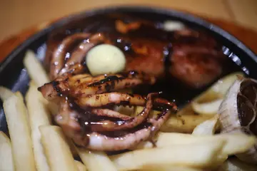 以前一路帮衬开tst个间 早几年知道系将军澳开咗但都只叫过外卖 今日终于第一次去将军澳门店食两个人胃口唔大 叫咗一份雪花印第安洋葱粉炸鸡 (有骨)+ 海鲜饼 炸鸡即叫即炸 外脆内嫩 d粉好香 咬下d骨好爽