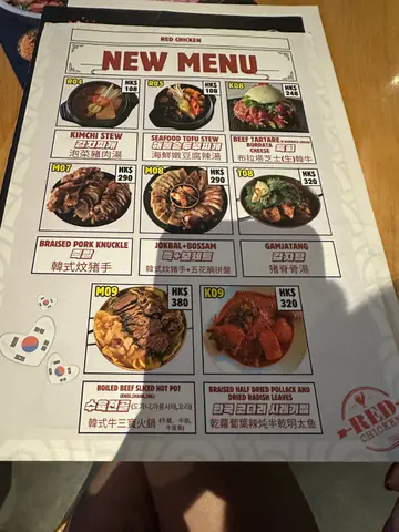 对于韩国炸鸡,我一向很严格还特地飞韩国参加多次的炸鸡啤酒节在香港吃过这么多家韩国炸鸡店不是很腻很油就是鸡肉很干但唯独这家将军澳红鸡在无法飞韩国的时候我会一直一再去光顾这是我第6次吃这家红鸡推荐给大家❤️❤️❤️红色韩式甜辣酱鸡肉 鲜嫩多汁 很过瘾😋海鲜韩式pizza 料实在 口感爽口 一片接一片😋晚上做外面 还有将军澳地标 蝴蝶桥夜景可以欣赏店家很亲切服务很好还会记得我的姓氏及喜好的座位😃😃真心推荐❤️❤️❤️希望你们长长久久,让我可以常常带著朋友去聚聚吃到好吃的韩国炸鸡