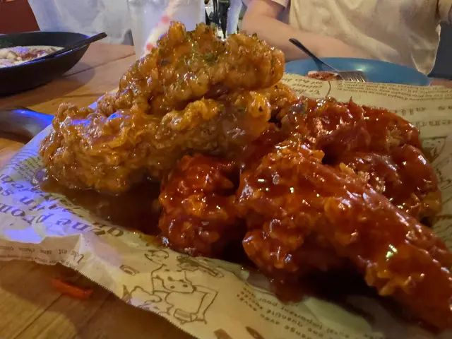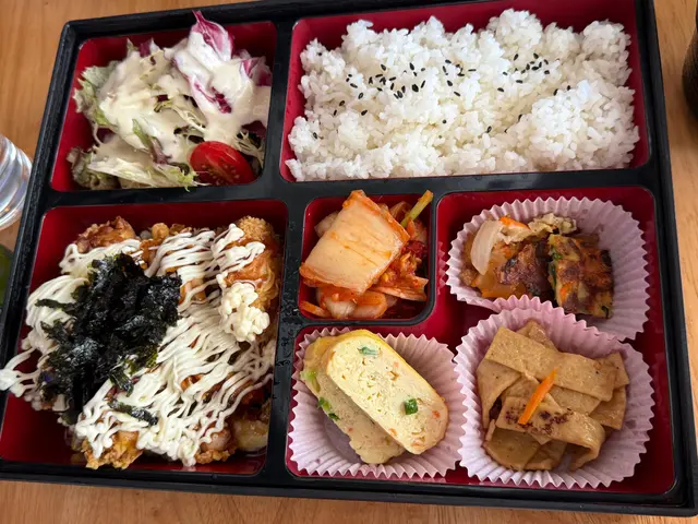 OMW今日Lunch終於衝出office,食韓國嘢!尖沙咀其實好多韓國餐廳,今日食嘅呢間OMW之前食過幾次,今次試咗New Lunch Menu嘅其中一個~ 🍱蛋黃醬炸雞便當$88 +青提子汁$5便當上枱好豐富啊,有白飯、主食、小菜、蘿蔔湯!整體味道都唔錯,不過下次都係試吓其他嘢🤣 ⭕️蛋黃醬炸雞佢個造型勁似日本大阪燒,打卡靚。本身諗住炸雞係真係一件件嘅炸雞,點知原來佢只係炸雞扒,有少少被騙感,少失望🥺。整體嚟講,佢都幾好食,層次非常豐富:最上面係飯素果種紫菜,然後係蛋黃醬,之後係炸雞扒,最底有隻全熟煎蛋(幾surprised)。全部嘢質素可接受,送飯一流。個白飯好夠熱,喺冷氣環境食,不期然又食多兩啖飯😬 ⭕️青提子汁:甜,有提子粒粒(不過就咁飲啲粒粒會沉底,我倒咗出水杯飲,會方便啲)。 🥗韓式小菜每次食辣國嘢都會覺得好健康。因為佢哋有小菜,食韓國餐一定會有菜落肚!👑沙律:佢用嘅沙律醬幾有驚喜,有清新嘅柚子味,應該係自己調配嘅,欣賞🧡👑魚糕:另外欣賞佢小菜有我鍾意嘅魚糕💕 平時出面普遍都係魚糕湯,魚糕會煮到好淋、勁濕。呢度有果種有少少彈性同乾爽嘅魚糕,好食過魚糕湯勁多,超級欣賞💕💕💕😱煎餅:凍咗,唔係太好食。⭕️蛋卷:唔會煮得過老,收貨。 ⭕️泡菜:夠爽脆,偏辣。 💜溫馨提示:海鮮拉麵偏辣,食得辣先好嗌!同事一路食一路辣,我都試咗一啖湯,海鮮味幾濃,但真係辣,係辣喉嚨果種。 📍Red Chicken紅雞(堂食-尖沙咀)✨亮點:Lunch hour唔算多人,靜靜哋食吓嘢幾開心!便當份量好足,可以一直飽到夜晚! 🙇🏻♀️特別嗚謝:願意行出去食飯嘅自己! #omw食韓國嘢 #omw尖沙咀 #omw油尖旺 #尖沙咀lunch #hkfoodie #hkfoodshare #hkrestaurant #香港美食 #油尖旺美食 #尖沙咀美食 #香港韓國菜…查看更多