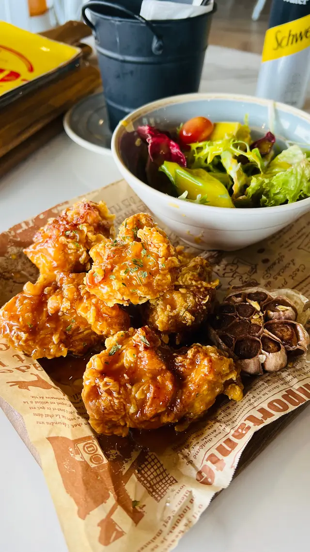 半半炸雞 - 原味 + 秘製蒜香醬 + 無骨