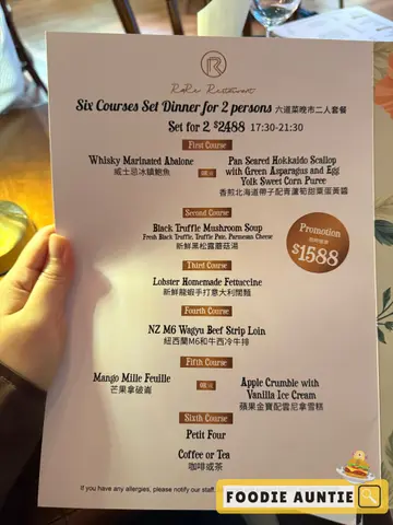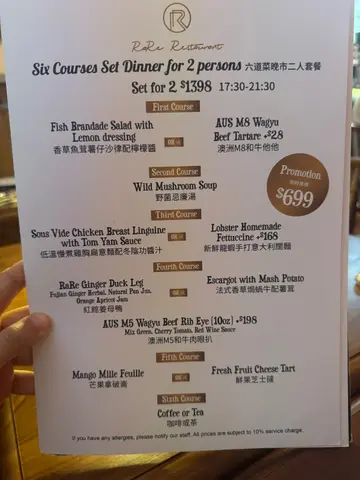 🥳 做紧周年优惠嘅超抵食西餐厅 @ 🌟 红馆 🌟.💁♀️ 图片展示美食:六道菜晚市二人套餐 HKD 699.👀 呢间由蓝带厨师主理嘅隐世西餐厅,最近做紧周年推广优惠,超抵价钱就食到六道菜晚餐,点可以唔去试下?!.🍽️ 作为第一道头盘,「澳洲M8和牛他他」剁到细腻柔软,混入香草同蛋黄酱之后带出淡淡坚果香。.🥗 另一款系「香草鱼茸薯仔沙律」,口感绵滑,柠檬酱汁清新解腻,两者搭配得恰到好处。.🍄 第二道系暖笠笠嘅「野菌忌廉汤」香气真系无得顶!打碎嘅野菌茸带来绵密口感,松露油嘅香气画龙点睛。.🍝 店员好贴心,一道道菜慢慢上,接住系第三道嘅「低温慢煮鸡胸扁意面」。鸡胸肉嫩滑,冬阴功酱汁酸辣醒神,完美挂满每条意粉,泰式同意式嘅融合超惊喜。.🦞 另一款系「新鲜龙虾手打意大利阔面」真系落足料!龙虾钳肉弹牙又鲜甜,阔面沾满浓郁龙虾膏酱,绝对唔可以错过!.🦆 第四道嘅「红馆姜母鸭」作为主菜,将中式精髓以西式呈现!鸭腿有姜母药材香完全渗入肉中,配上橙杏果酱意外地夹,暖胃又滋补。.🐌 「法式香草焗蜗牛」就经典重现!蜗牛弹牙,香草牛油香浓到漏,同绵滑薯茸一齐食。.🥭 第五道系甜品,「芒果拿破仑」嘅千层酥层次丰富,新鲜芒果甜而不腻,吉士酱轻盈唔腻。.🧀 另一款系「鲜果芝士挞」,芝士馅奶香浓郁,冰冻鲜果清新解腻,饼底牛油香脆。.☕️ 最后以自选饮品作结,咖啡香醇,同奶泡比例完美,为丰盛晚餐画上完美句号!.😌 餐厅楼底高,装修典雅,空间感大坐得舒服,依家仲做紧好多优惠,有机会值得试吓!.📍 中环干诺道中50号地下B号舖.꧁𖠌ꕥ𖠌ꕥ𖠌ꕥ𖠌ꕥ𖠌ꕥ𖠌ꕥ𖠌ꕥ𖠌ꕥ𖠌꧂.…Read More