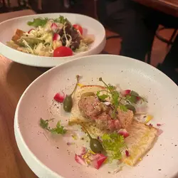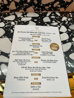 🥳 做緊週年優惠嘅超抵食西餐廳 @ 🌟 紅館 🌟.💁♀️ 圖片展示美食:六道菜晚市二人套餐 HKD 699.👀 呢間由藍帶廚師主理嘅隱世西餐廳,最近做緊週年推廣優惠,超抵價錢就食到六道菜晚餐,點可以唔去試下?!.🍽️ 作為第一道頭盤,「澳洲M8和牛他他」剁到細膩柔軟,混入香草同蛋黃醬之後帶出淡淡堅果香。.🥗 另一款係「香草魚茸薯仔沙律」,口感綿滑,檸檬醬汁清新解膩,兩者搭配得恰到好處。.🍄 第二道係暖笠笠嘅「野菌忌廉湯」香氣真係無得頂!打碎嘅野菌茸帶來綿密口感,松露油嘅香氣畫龍點睛。.🍝 店員好貼心,一道道菜慢慢上,接住係第三道嘅「低溫慢煮雞胸扁意麵」。雞胸肉嫩滑,冬陰功醬汁酸辣醒神,完美掛滿每條意粉,泰式同意式嘅融合超驚喜。.🦞 另一款係「新鮮龍蝦手打意大利闊麵」真係落足料!龍蝦鉗肉彈牙又鮮甜,闊麵沾滿濃郁龍蝦膏醬,絕對唔可以錯過!.🦆 第四道嘅「紅館姜母鴨」作為主菜,將中式精髓以西式呈現!鴨腿有薑母藥材香完全滲入肉中,配上橙杏果醬意外地夾,暖胃又滋補。.🐌 「法式香草焗蝸牛」就經典重現!蝸牛彈牙,香草牛油香濃到漏,同綿滑薯茸一齊食。.🥭 第五道係甜品,「芒果拿破崙」嘅千層酥層次豐富,新鮮芒果甜而不膩,吉士醬輕盈唔膩。.🧀 另一款係「鮮果芝士撻」,芝士餡奶香濃郁,冰凍鮮果清新解膩,餅底牛油香脆。.☕️ 最後以自選飲品作結,咖啡香醇,同奶泡比例完美,為豐盛晚餐畫上完美句號!.😌 餐廳樓底高,裝修典雅,空間感大坐得舒服,依家仲做緊好多優惠,有機會值得試吓!.📍 中環干諾道中50號地下B號舖.꧁𖠌ꕥ𖠌ꕥ𖠌ꕥ𖠌ꕥ𖠌ꕥ𖠌ꕥ𖠌ꕥ𖠌ꕥ𖠌꧂.…查看更多