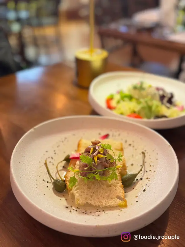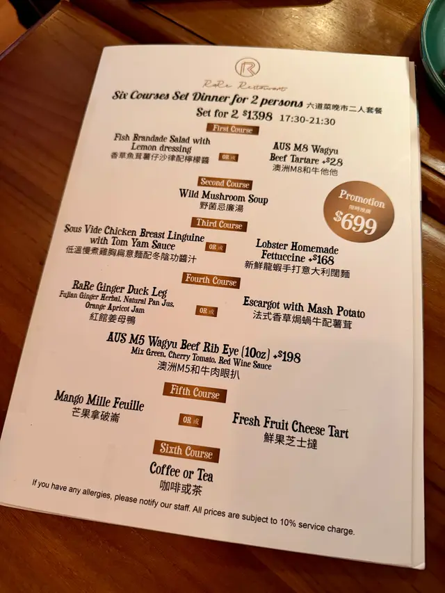 同另一半專登試咗呢間餐廳嘅二人套餐,原價過千蚊,而家特價就食到😍🌟六道菜晚市二人套餐 $699每人有頭盤加湯品加主菜一加主菜二加甜品加餐飲,合共六道菜👍🏻🌟頭盤 香草魚茸薯仔沙律薯蓉打得綿密滑溜,食到一絲絲魚嘅質感,不過留意返佢係凍食🌸香草同檸檬醬唔算濃味,清清地幾好!🌟湯品 野菌忌廉湯有菌香但更多嘅係Creamy嘅質感,佢唔係嗰種有口感,而係質地超級滑身,每啖都飲到菇菌獨有嘅香氣💕🌟🌟主菜 低溫慢煮雞胸扁意粉配冬陰功醬汁驚喜之作!雞胸用慢煮保持肉質軟嫩,完全唔「鞋」口,冬陰功醬汁酸辣醒神,味道對板!將冬陰功湯應用落去意粉度都可以百分百還原返個精髓!呢個fusion同埋個雞胸,創意同味道都係一百分,好好食🥹🥹🌟主菜 紅館姜母鴨利申吓呢個係男朋友嘅主菜👍🏻鴨腿外脆入面好嫩,我食咗少少覺得味道有啲似燒味嘅燒鴨😂男朋友就話似乳鴿😂好似形容得好low但我哋一致認為呢個係普通燒味舖同酒樓都做唔到咁高水準嘅鴨髀😍勁好食!配上薑同橙杏果醬平衡膩感,好出色💕💕🌟🌟主菜 澳洲M5和牛肉眼扒 +$198唔係誇張,呢個係我今年食過最好食嘅牛扒,沒有之一!!!未食嘅即刻同我去食!就算要加錢都要叫!佢油花靚唔靚我唔知道,我叫咗medium,肉質個出乎意料地軟嫩🥺佢唔係行Cap有口感嘅嗰種路線,而係Juicy🥹嗰種Juicy嘅程度就好似隻牛游緊水咁樣🥹我從未食過咁Juicy嘅牛,而且牛味都好濃郁🥹佢另外有一啲肥膏位,男朋友係完全唔理一嘢啪落口🫨結果我膽粗粗跟佢咁做,佢嘅肥膏位係特別濃牛味,油香十足😍好正!🌟甜品 芒果拿破崙一上枱男朋友就靈魂拷問問芒果拿破崙究竟要點食?😂😂😂笑死😂酥皮脆到一刀切落「咔嚓」聲,口感係酥脆唔易散開,唔錯👍🏻不過牛油味唔算好濃🌸吉士醬傾向似奶黃嘅感覺,甜度適中,芒果清甜多汁,覺得比起啲芝士蛋糕,拿破崙更顯誠意👍🏻🌟餐飲 檸檬茶冇乜特別,正常發揮-呢間餐廳真係好食,強烈再次推介個意粉同埋牛🥹…查看更多