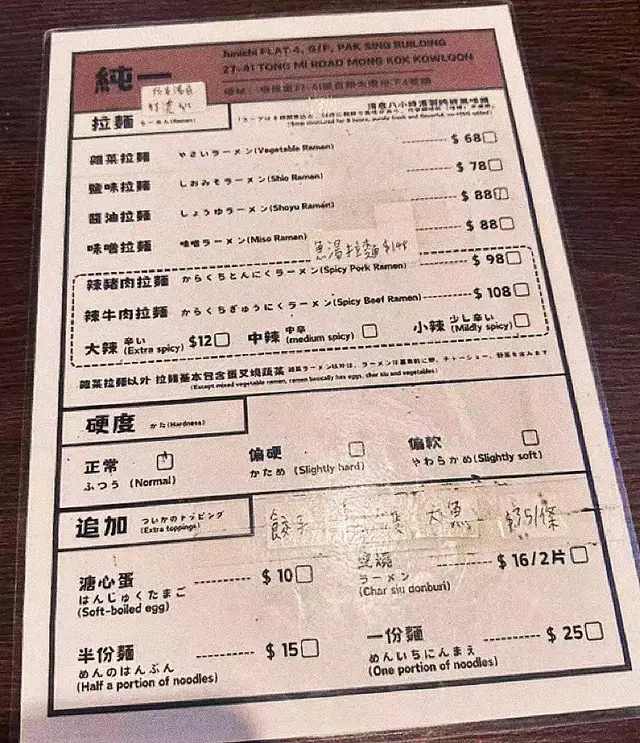 純一 (大角咀) 网上订位即赚Rice Dollars 网址: https://s.openrice.com/QrLS0JJy7W0 地址: 香港大角咀塘尾道27-41號百勝大廈地下4號舖 电话: +852 95421565