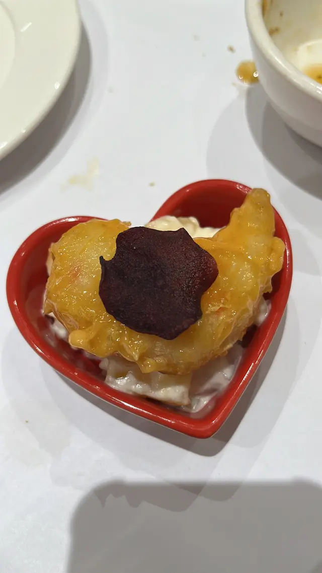 一直幫襯開素之樂嘅午市點心,無試過私房菜,趁住中秋做節就會一會佢。🔸🔹🔸🔹🔸🔹🔸🔹🔸🔹🔸🔹🔸🔹Dinner Menu ($328 / person, 兩位起)(精選拼盤) 酥香素魚柳、涼拌篙筍、椒鹽蓮藕、涼拌彩蔬|⭐⭐⭐⭐酥香素魚柳 - 素鰻魚炸得酥脆,上面沾左沙律醬,增添唔少滋味。涼拌篙筍 - 篙筍水嫩多汁,麻醬加埋芝麻粒,令到篙筍食落唔寡。椒鹽蓮藕 - 椒鹽配所有野都無得輸!涼拌彩蔬 - 普通冷盤,無乜特別。(湯品) 茶樹菇燉湯|⭐⭐⭐⭐好足料! 濃濃菌🍄🟫味!蘆筍三文魚米紙卷|⭐⭐⭐估計蘆筍唔當造,變左時蔬三文魚米紙卷,d菜好新鮮,好fresh~清宮彩虹🌈卷|⭐⭐⭐⭐⭐用腐皮卷住紅蘿蔔絲🥕、篙筍絲同木耳絲,咬落去索索聲,芡汁增添左腐皮個滑嫩程度,終於見到一道菜係有少少特色,有食私房菜嘅感覺啦!一葉酥|⭐⭐⭐即係素春卷🫔,包D料唔多,加上點左葡汁,D汁搶晒D味,唔太食得出入面係咩餡。咕嚕酸辣雞|⭐⭐⭐⭐食左D先發覺唔記得影相😂 菠蘿🍍同素肉比例好好,大概1:3。食到呢度已經開始有D飽嘅感覺,呢個時候上一道酸酸甜甜嘅菜式去解膩,非常好。意式焗法包|⭐⭐⭐⭐⭐好大件,好抵食! 但真係開始飽,輕輕淺嘗一下試左個味就算。完全就係夏威夷風情🍕感覺,又係酸酸地甜甜地,幫手解一解膩。金湯雜菌蕃茄盅|⭐⭐⭐原個蕃茄🍅釀滿滿嘅海鮮菇🍄🟫,配南瓜湯,味道不過不失。SOD酵素|⭐⭐⭐⭐⭐酸酸地,唔識形容個味道,功能性一流👍🏻! 服務員話飲佢會幫手消化,飲左佢真係無咁滯,化到d胃氣!日式燉飯|⭐⭐⭐⭐⭐個樣望落好普通,本來打算原個打包就算,但服務員強烈建議我地試少少先打包。一𢳂落去,原來內有乾坤,燉飯藏左喺入面,有D蕃茄茸🍅、素肉醬等濕濕地嘅食材,配埋外面層白飯🍚,感覺啱啱好!鮮磨合桃露|⭐⭐⭐奶味重左D,有D粉粉嘅感覺,似加左奶粉落去煮合桃露而唔係用鮮奶,唔夠滑。🔸🔹🔸🔹🔸🔹🔸🔹🔸🔹🔸🔹🔸🔹整體感覺:食物以煎炸物為主,味道中上,惜創意同手工略為欠奉,唔太顯現到私房菜嘅特色;但餐廳以價錢同份量搭救,只係本人重質多過重量😆。服務員態度殷勤。…查看更多