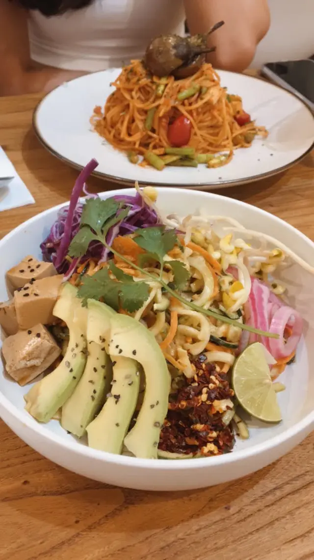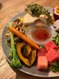 和素食朋友午饭聚,来了汝洲街的素年吃午餐。一入门口,已感到很重的文青feel。坐下后,便叫了日式酱烧莲藕汉堡扒三文鱼他他定食,及十二种蔬菜开心果酱贝果全日早餐。饮品叫了苹果山楂康仙花洛神花茶,及特饮夏日热辣辣。食材精选有机本地菜,新鲜清新,加上用了无蛋奶自家调配酱汁,及原来连炒蛋也是全素,(炒蛋是由豆腐做的),对全素食者来说,可以食得安心。~ 日式酱烧莲藕汉堡扒三文鱼他他定食:定食有自家制日式不可能莲藕汉堡扒,卖相及口感都象真度高。三文鱼他他米饼外表卜卜脆,内里的三文鱼爽口。野菜天妇罗食材清甜,外皮香脆。加上白饭及豆乳味噌酱,还有甜品,令整份定食不但上枱时吸睛,更是非常丰富呢!~ 十二种蔬菜开心果酱贝果全日早餐:全日早餐的十二种蔬菜新鲜,营养丰富,黑醋沙律酱酸咪咪,令人开胃。开心果酱味道浓郁,贝果烟靱。炒素蛋更有惊喜,原来是用豆腐炒的,全素者食得安心呢!~ 苹果山楂康仙花洛神花茶:入口清新芳香,养颜美容,生津抗养化。~ 特饮夏日热辣辣:上枱时色彩缤纷,消暑解渴,份量有西瓜、薄荷及燕麦奶,是视觉及味觉的最高享受呢!素年不但位置寛敞,坐得舒服,加上店员亲切,下次一定再来。…查看更多