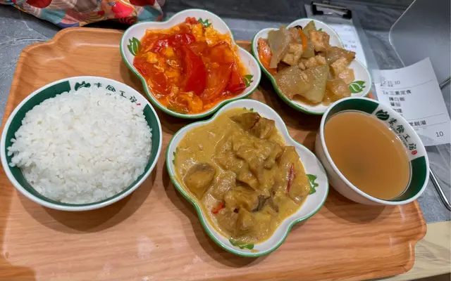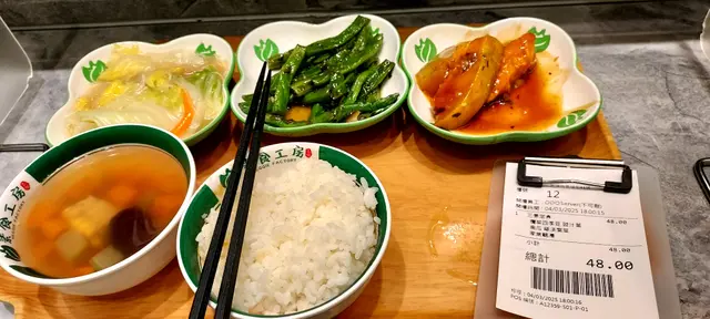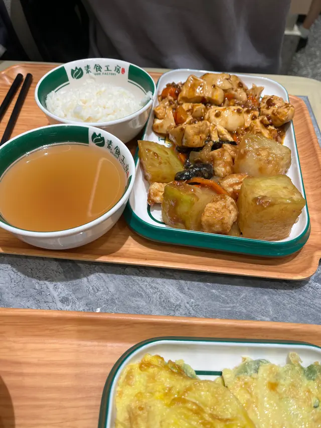 同fd子約食飯,fd子突發奇想搵咗呢間餐廳,作為食肉獸嘅我就諗住食下蔬菜當清腸胃啦,我地係食lunch,最繁忙個段時間,去到發現間嘢其實好多人,由於入面堂食位置唔係好多,所以都等咗段時間,見到無論堂食定外賣都唔少人,所以都好好奇個味道😋入到去一坐低好快就有餸,因為佢同雙餸飯差唔多▪️三素定食配家常靚湯$431️⃣炆南乳花生蓮藕、乾煸福花、白蘿蔔2️⃣大白菜、醬煮杏鮑菇、紅燒豆腐佢地啲菜除左食落有蔬菜本身嘅清甜,加上佢地嘅調味令到食菜唔會變得好寡,會忍唔住一啖接住一啖系咁食,唔好睇淨係得蔬菜食落其實好飽肚,仲有佢地啲飯係珍珠米,食落好有咬口👍🏻…查看更多