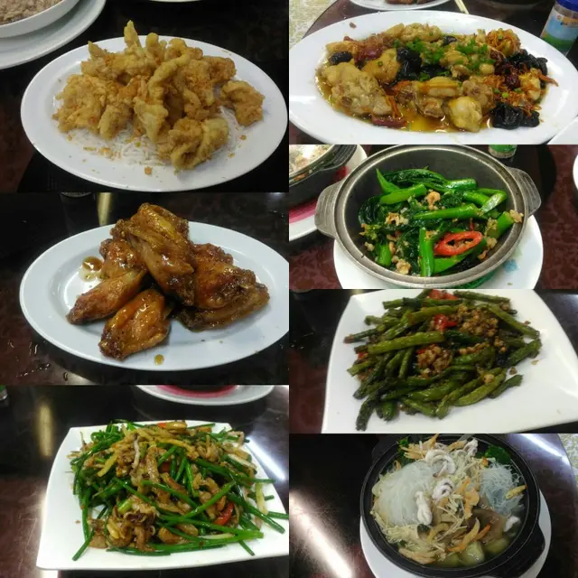 咕嚕肉,胡椒豬肚湯,蝦干炒粉絲,薑葱台山蠔,麻辣豬紅