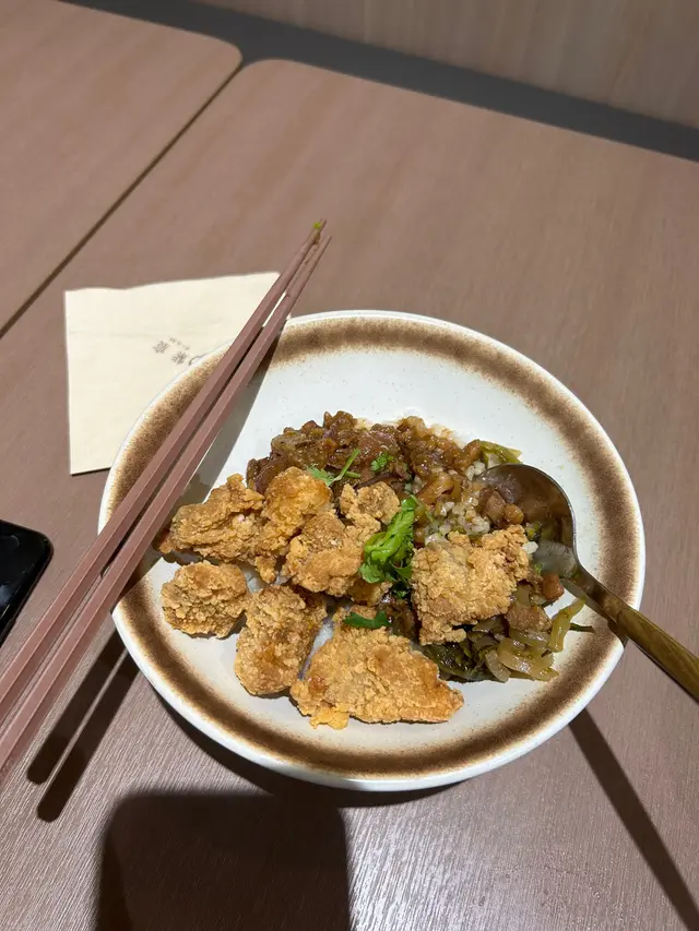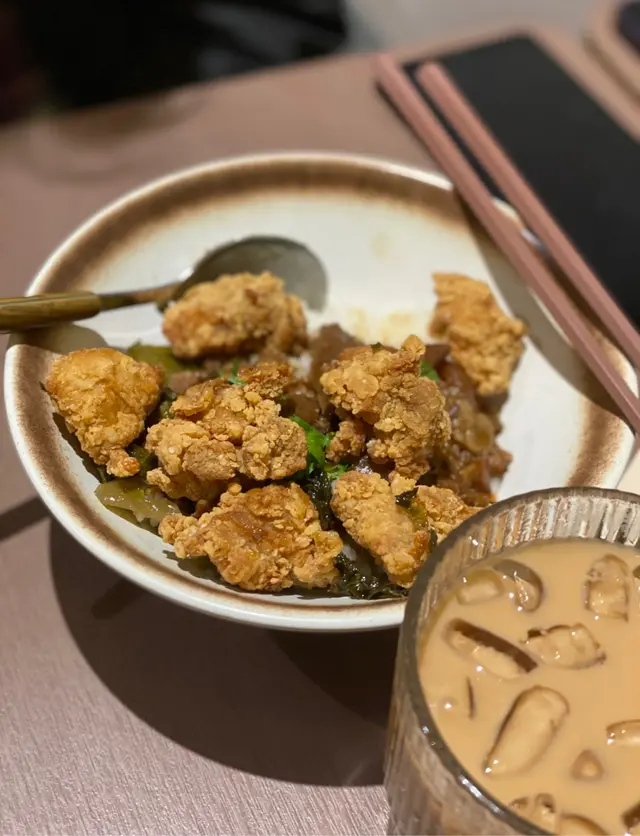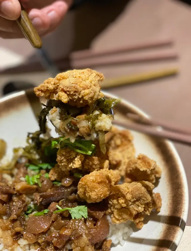 這家店的炸鹽酥雞令人驚艷,外皮酥脆不油膩,雞肉鮮嫩多汁,鹹香味道恰到好處,讓人一口接一口停不下來。配菜的腌菜清爽開胃,酸鹹適中,成功平衡了炸物的油膩感。飯雖然不是用珍珠米,但米飯粒粒分明,吸收了少量滷肉汁後,香氣四溢,滷汁極入味,鹹香中帶點甘甜,讓整碗飯的層次感大大提升。值得一提的是這裡的蛋餅,絕非用印度凍餅假裝,而是真材實料的台式蛋餅,餅皮軟Q帶點嚼勁,蛋香濃郁,搭配各式配料都很出色。整體來說,這家店的每一道料理都展現了細膩用心,是值得再訪的小吃好選擇。紫宸 (葵涌)葵涌榮芳路9號恒景商場地下G12號舖…查看更多