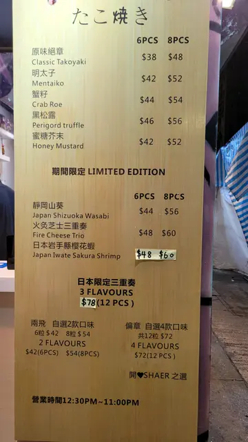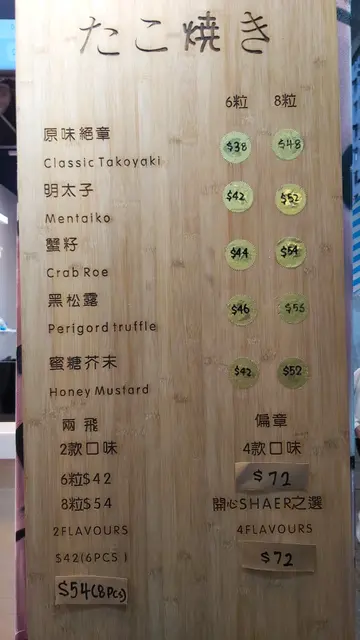 🐙🐙🐙旺角登打士街一向都系好多小食店、手摇饮品集中地,亦时时都有新铺转手、新店开张今次依间章鱼烧开左唔够一个月,吸引到我去试既系因为佢有唔同口味:明太子、松露、蟹籽、蜜糖芥末,另外仲有期间限定:静冈山葵、火炙芝士三重奏、日本岩手县樱花虾蟹籽章鱼烧(6个-$44)👍🏻👍🏻👍🏻见到多款口味,首选简左蟹籽,章鱼烧沾满蛋黄酱,再落左好多蟹籽,整粒章鱼烧热辣辣,都痴满左蟹籽,食落去有一粒粒八爪鱼粒,加埋蟹籽同超多酱,好好味,蟹籽仲要多到食完哂都仲可以铺满半个盒下次最想试系火炙芝士三重奏🧀🧀🧀