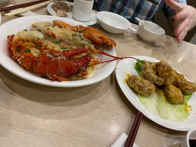 平時來開飲茶都很唔錯,想試晚市好耐但預唔到時間。今次同爸媽來做冬一試,實在美味😋不過平時我要自己加茶,唔通有老人家佢會幫手,佢地今次好主動加茶水爸就大讚炸子雞肉質非常嫩滑,同超大隻。。之後叫咗金沙海鮮豆腐煲,呢個我好滿意,又係大煲美味,入邊唔止有豆腐,仲有帶子仔同象拔蚌,鹹蛋黃調出個味很好再叫咗鮑魚,話6頭都頗大,林滑很好,鳳爪都美味之後嗰啲忍唔住要即食無影相😅再叫咗菠蘿肉排,一樣係多肉嫩滑。同叫咗大班兩味,魚肉非常鮮嫩總之一定會再嚟啦,好食嘅酒樓真難搵