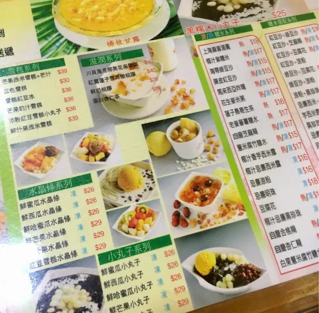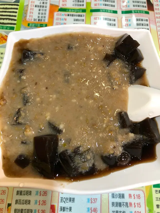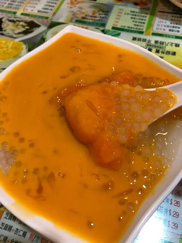 食咗好滿足嘅晚餐,意猶未盡,加多個甜品咁就Perfect啦。慕名到這糖水舖,點了涼粉綠豆沙,楊枝甘露2款凍品。先講吓涼粉綠豆沙,海帶綠豆煲到起晒沙,唔太甜,加埋涼粉,透心涼,味道唔錯,性價比高。楊枝甘露,一大碗西米,上面淋上深黃色的忌廉芒果漿,內𥚃有芒果肉和柚子肉,柚子肉咬落有少少苦澀味,整體味道普通,賣相比較遜色。雖然價錢唔貴,若有下次,一定唔會再點呢個所謂楊枝甘露。查看更多
