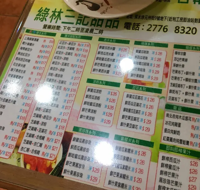 同兩位老友晌耀東街嘅「金牌源記」食完晚飯後,大家都傾得意猶未盡,但又唔想太阻人做生意,故此,近近哋,臨時加映,就過咗去「綠林三記」食碗糖水。呢段飯市時間,幫襯「綠林三記」嘅客唔多,我哋又可以吹多陣。環境唔多講,就喺一眼睇晒,一室紅紅黃黃,較港式糖水鋪嘅格局。餐牌就一大張墊晌枱上嘅玻璃之下,選擇非常之多,但就唔喺有啲咩喺好有亮點嘢,就好似我哋所揀嘅,亦唔喺啲花巧款式,睇賣相亦喺平實普通。椰汁紫糯米 $17老友喜歡傳統啲嘅中式糖水,所以,揀咗個紫糯米,煲得夠晒火喉,所以,啲紫糯米咬落煙韌有咬口,而且,真材實材無欺場;再淋上大量椰汁作調和,令味道變得清甜香滑。鮮蜜瓜豆腐花 $26另一位老友就一心想着豆腐花,就晌豆花系列中揀咗呢一款配鮮蜜瓜嘅組合,不過,跟預期有好大落差,因為落咗超多椰奶喇,初時仲以為嚟錯咗添,而令個豆腐花偏甜,有啲畫蛇添足之感。但單講豆腐花,嫩滑有豆香,蜜瓜亦夠清甜,只喺衰過多嘅椰奶而已。鮮芒果小丸子 $29唔使多講,一句總結,勁多芒果粒呀,仲喺熟透超甜!比起西米撈,大大粒嘅小丸子更具咬口,軟精煙韌,配上大量嘅芒果汁底及芒果粒,簡單而好味,可以話得喺百食不厭。相對老友嘅豆腐花,我嘅小丸子絕對喺性價比高。雖然,友人就唔太滿意個鮮蜜瓜豆腐花,之不過,大家都認為一餐飯,有個甜品作結,感覺都喺完整啲嘅。查看更多