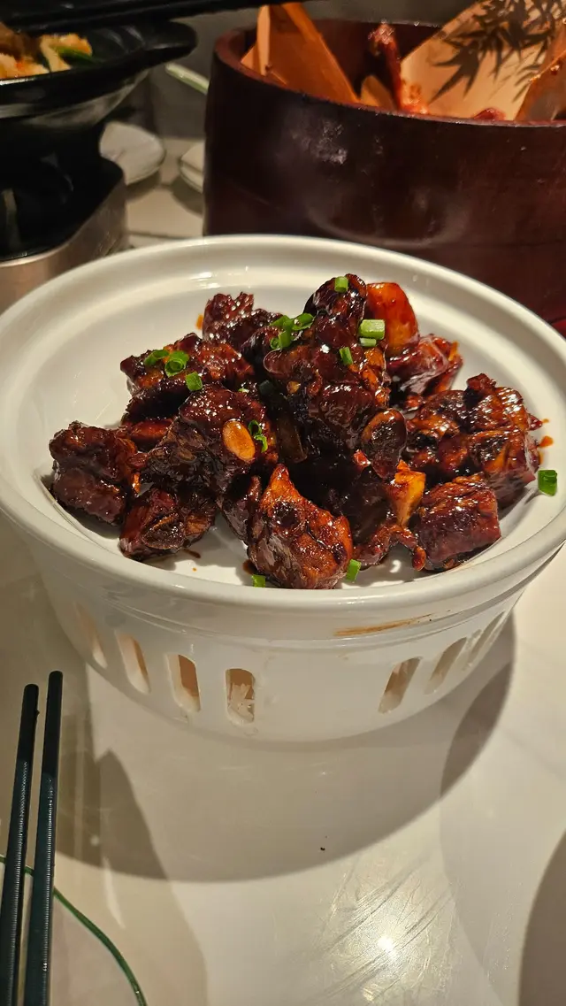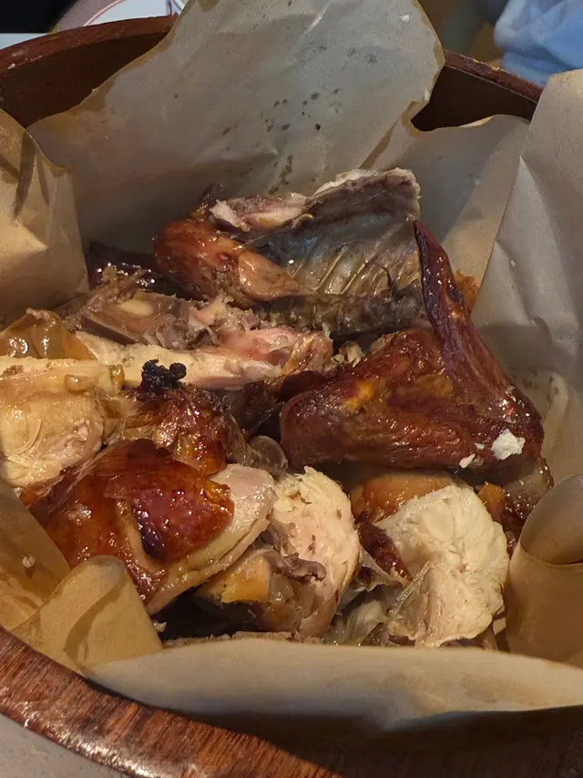 以竹林設計為主題🎋,仲有古箏演奏,環境超有江南風情~雖然人多時會有點嘈,但食物水準完全冇令人失望!🍗【招牌必點】🍗▪️ 龍井烤雞 超大隻超抵食!用龍井茶煙燻烤製,外皮香脆🔥,連雞胸肉都嫩滑多汁~上枱仲會幫你剪好,方便又貼心💯 幾乎每枱都點,果然係鎮店之寶!▪️ 砂鍋西施豆腐豆腐滑到入口即化🤤,吸晒濃郁湯汁精華!配白飯真係無敵~黏黏糊糊嘅口感,一啖豆腐一啖飯,停唔到口!▪️ 高湯蝦干小青菜清淡得嚟又有蝦干咸香🦐,青菜份量十足🥬,完美平衡其他濃味菜式!🍞【甜品驚喜】🍞▪️ 麵包誘惑厚多士外脆內軟🍞,配埋冰凍雪糕🍨,冷熱交融超邪惡!切好一磚磚超貼心,甜品控必試~總結:價錢合理💰,環境有特色,龍井烤雞同西施豆腐絕對要encore!查看更多