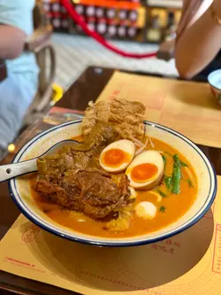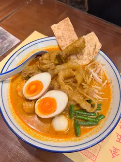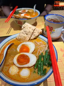 #pb食在深水埗 深水埗新開吉隆坡咖喱麵🍜好耐冇出post啦🤪 今次想介紹呢間位於深水埗新開嘅特色咖喱麵😋 佢本身係黎自馬來西亞吉隆坡 呢間係佢首間香港分店👍🏻 佢選址係深水埗汝洲街 店內裝修充滿懷舊特色😍 特格一讚幾位店員嘅服務態度都好好 會好用心介紹Menu 又有禮貌🥰.佢主打5款咖喱麵 其中4款湯麵、1款撈麵 價錢$58-$228不等👍🏻 辣度預設係微辣(唔緊張)可以再加辣🤪 其他小食同樣好有特色 包括沙葛沙律、蝦醬雞翼、咖喱雞腳等😋 飲品方面有咖啡同埋幾款桔仔水😍🔹CM1 好卵!好雞!緊張咖喱麵🐣推介❤️呢款係第二級咖喱麵 招牌咖喱麵加咖喱雞髀😋 佢嘅咖喱味好香、好濃 但口感唔會好漿口👍🏻 麵底係滲滲麵(油麵+米粉)雞髀好大隻 肉質幾滑😍 整體份量好多 加埋流心蛋、魚蛋、炸腐竹、豆卜、芽菜、豆角等配料 食到2/3已經覺得飽🤪🔹CM4 古早咖喱雞乾撈麵🍜呢款乾撈麵同樣有隻大咖喱雞髀😋 乾撈麵冇咖喱湯浸住 辣度相對冇咁高🤪 份量同樣好多👍🏻 🔹蝦醬雞翼🐣推介❤️ 雞翼好大隻 肉質好嫩滑😍 蝦醬味好香濃 但絕對唔會好鹹😋🔹闔家混桔🍊🔹蜜都混桔🍹兩杯都係桔子混酸梅水 一款加左橙汁 一款加左柚子蜜😋 味道酸酸甜甜 好refreshing 👍🏻 配埋咖喱麵食 好解漏😍.整體✨ 呢間位於深水埗新開嘅咖喱麵黎自馬來西亞吉隆坡 好有特色👍🏻 佢主打5款咖喱麵 咖喱味香濃但唔會好辣😋 雖然新開只有幾個月 但已經好受歡迎 6點幾已經見到唔少人排隊😍 緊張咖哩麵 (深水埗)深水埗汝州街128號地舖…查看更多