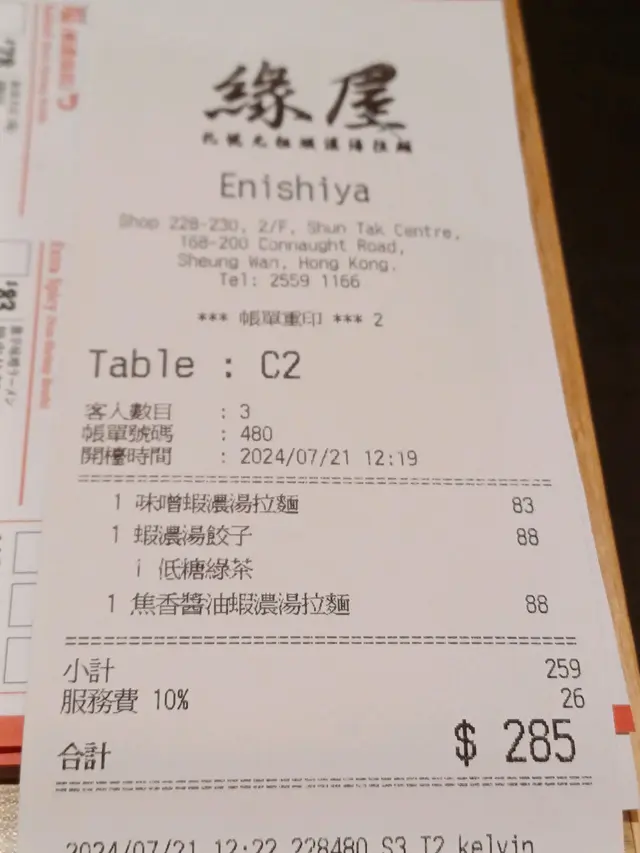 ENISHIYA Original Rich Shrimp Broth Ramen (Shun Tak Centre)