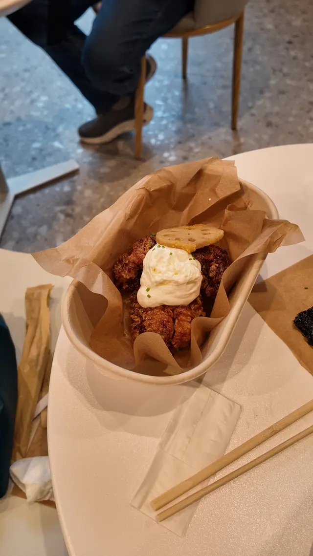 而家喺灣仔食lunch 又多個選擇了!全新日韓兩餸飯,前星級米芝連餐廳厨師主理,抵食又好味!全部由星級大廚精心炮製呢!有齊日、韓菜式,$68/2餸,包埋前菜同主食,真心抵食!本人最推介係佢嘅日式炸雞,加上柚子忌廉cream,真係好開胃,食唔停口,食完又想再食!仲有試咗佢嘅印度天多利烤雞腿大大隻啖啖肉重點係!!完!全!唔!乾!柴!佢連簡單嘅燒粟米菜式都又西京燒又蘋果木煙燻,真係勁有心機同考功夫,整體試左4款餸都唔錯 ,豚肉生薑燒都好好食!(唔好意思,啲餸食完先記得影,影得核突唔好介意😆)本身住灣仔嘅我,而家週末都會落去買兩餸飯做lunch!…查看更多