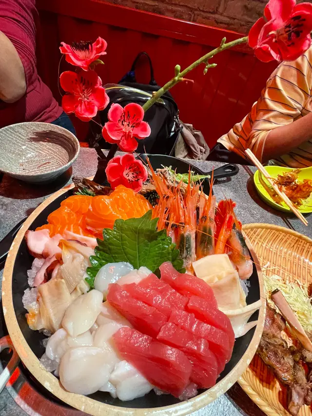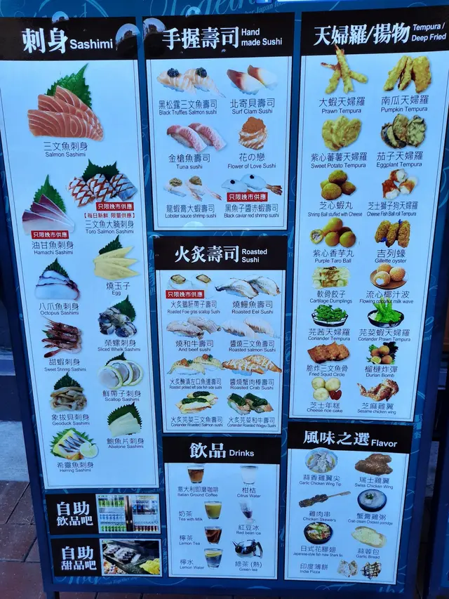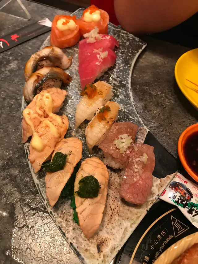 因為食物太多,小編重點講最令小編印象深刻果幾樣啦"刺身: 刺身當中小編最愛食虎蝦, 處理得新鮮, 無海水味, 肉質鮮甜, 滑又有咬口, 正!西日扒類: 羊架係必食, 小編食左3塊! 火喉夠哂再配上特調香料, 無得彈!天婦羅: 紫薯天婦羅係燒物中CP值最高,因為相對其他無咁肥膩,唔佔小編太多QUOTA但又滿足到小編中意食甜野既心 XD燒物: 鰻魚燒一定係最吸引的一樣, 佢地無燒到過龍, 又唔會燒唔夠熟太生, 所以保留到良好口感加魚肉的鮮味!卷物: 三文魚手卷一定要試, 佢同普通食三文魚壽司既分別唔係塊紙菜,而係漿汁先會帶出魚肉既靈魂, 增加到肉既TEXTURE!火鍋就原諒小編已經飽了, 俾唔到評價T_T