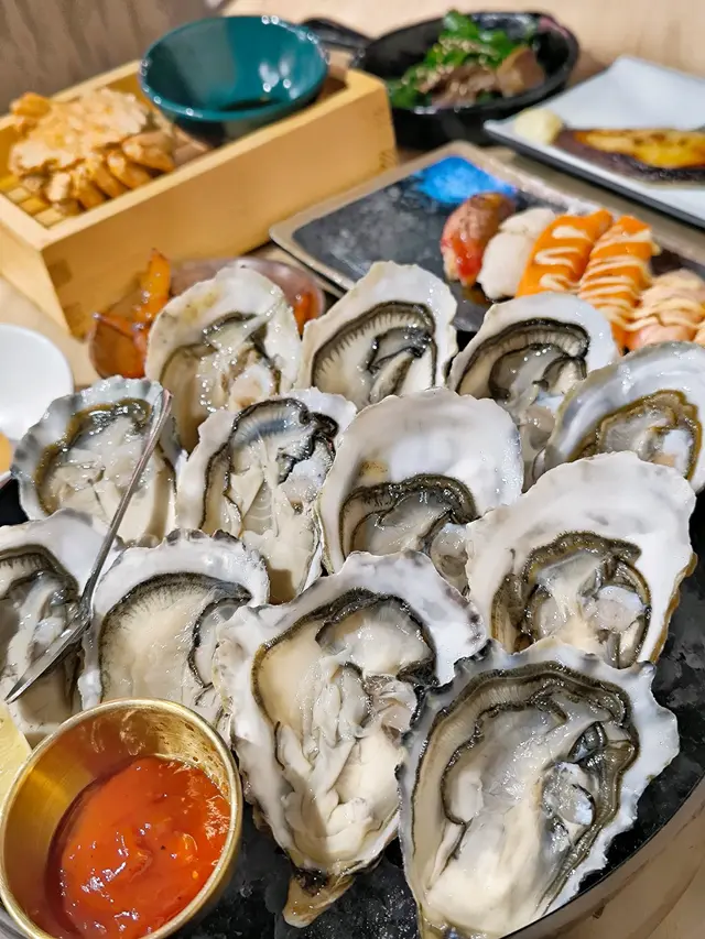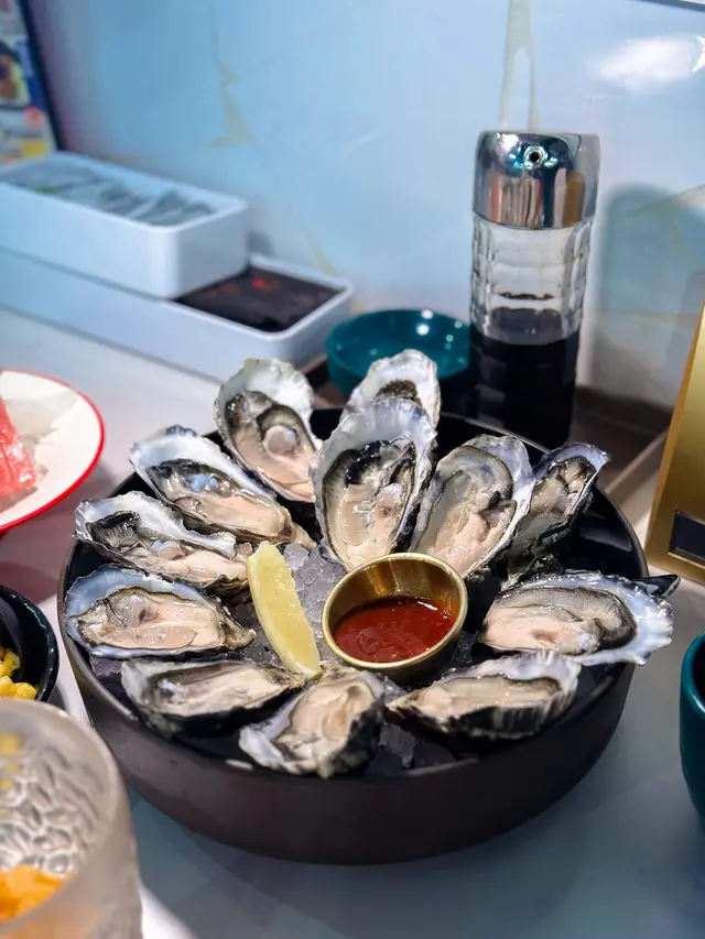 之前食過幾次,最近先知月尾就結業,真係幾可惜🥹 我哋食晚市$258,再加$168升級,臨別食豪啲💪🏻🦪 蠔🔸生蠔係日本兵庫縣室津生蠔,食落爽口,海水鹹味唔會太搶,味道鮮甜👍🏻🔸熟蠔就叫咗海膽醬燒蠔~🍣 刺身/手卷🔸開邊赤蝦、甜蝦、帶子、三文魚、油甘魚、吞拿魚🔸海膽手卷、鵝肝煙三文魚手卷🔸味付螺肉、芝麻八爪魚每次必食,質素有保證👍🏻🦀 蟹🔸蟹味噌蟹黃粥、蟹味噌蟹肉甲羅燒、北海道蒸毛蟹回本之選,比啲耐性就食到好西🤭🐂 牛🔸壽喜燒牛肉鍋、慢煮牛舌串♨️ 熟食🔸芝士醬玉子燒、芝麻雞翼、蒜蓉牛油燒海蝦🍍 水果🔸榴槤炸彈、D24榴槤、焦糖燒菠蘿有升級嘅話一定要食D24榴槤,香味同口感完全值回票價‼️🍦 雪糕食咗好多唔同款,其中益力多味超推薦💯🍇 巨峰提子乳酸氣泡呢度幾好坐,每次都係夜晚嚟吹水食到捧住個肚走,希望日後有緣再聚🙏🏻…查看更多