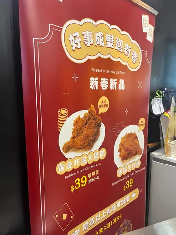 呢间继光香香鸡 系台式第一名炸鸡 真系几唔错👍🏻上次就分享左万圣节限定版🎃最近又推出新春产品 仲有加购小食优惠添🧨.〰 【好事成双迎新春】〰.📌黄金咔滋大鸡髀 $39美式炸皮超酥脆 鸡脾好厚肉 嫩滑多汁 洒上适量椒盐味粉 香口得嚟唔盖过鸡味🍗.📌薄脆生炸脾 $39呢款系港式薄脆炸皮 调味更浓香惹味🇭🇰不过鸡肉相对薄身 冇咁嫩滑juicy 干左少少🤏🏻.📌邪恶夜市鸡皮 $20 (23/1上市)鸡皮炸得超酥脆干身 淡淡调味 更突显阵油香🐔.〰购买炸脾系列可加购小食〰而家买炸脾有小食减$6优惠🤑新年同亲朋好友一齐分享就最啱🙌🏻.📌甜心地瓜球 减$6后⮕$14细细粒 超可爱 外脆内Q软🍡紫薯丸包住蕃薯蓉 地瓜丸包住紫薯蓉 软绵香甜 甜度适中唔会腻🍠.📌蒜脆杏鲍菇 减$6后⮕$20薄脆炸皮包住大大粒杏鲍菇 扎实饱满又多汁 配上蒜味粉 清爽香口🧄🍄🟫…查看更多