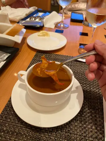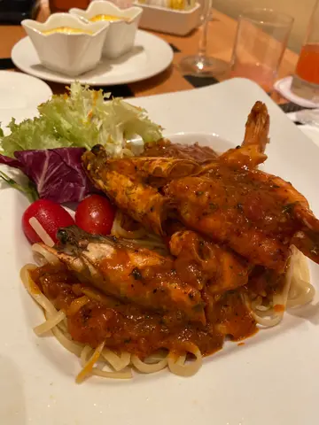 I’m so impressed with the semi buffet here. You can eat the starter and dessert as much as you can. For the starter, they will cook the lobster soup in front of you. You may see the fire as well as they will add some wine to the soup!! The taste is so amazing and you can find many lobster inside the soup. I ordered Steak for the main and my mum ordered king prawn pasta. The chef would cook both dishes in front of you. It’s amazing to see the chef to cook for you. …查看更多