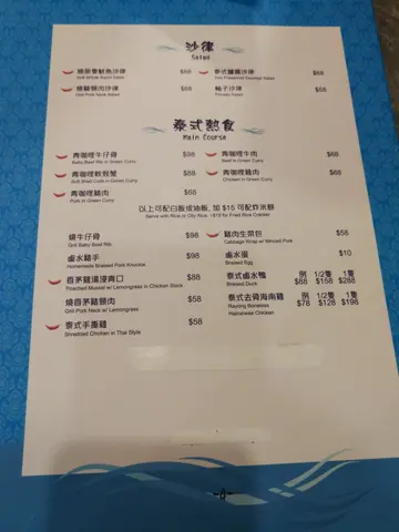 一餐食晒呢度嘅鸡牛猪,真心觉得佢啲肉好唔错,一啲肥肉都冇、完全唔韧同'hai',不过份量大家睇相都睇得出系非常少,如果细食嘅人口痕想食泰国野就可以叫个粉再叫个小菜食下。如果人多啲嚟,相信差唔多可以叫晒全个menu