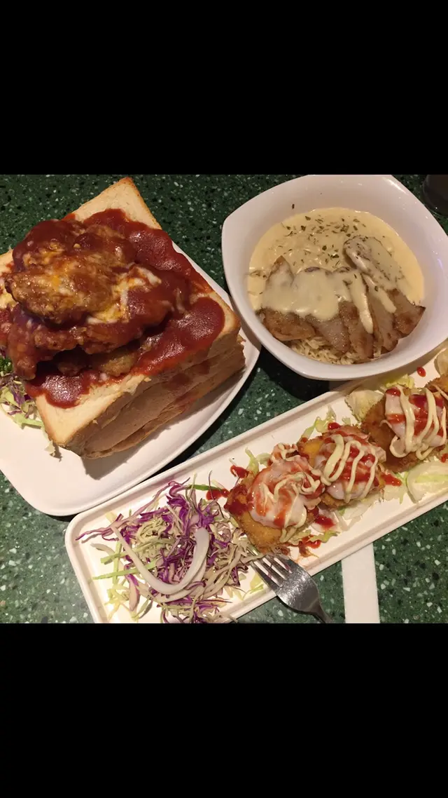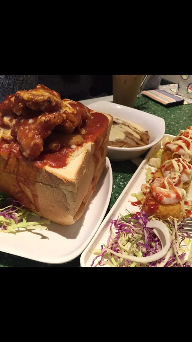 約咗一段時間終於約到幾個朋友去將軍澳游水,喺體力嚴重消耗下當然要搵嘢食啦。我哋行咗去新都城見呢間餐廳食物款好似幾多,裏面有黑大黑板寫咗好多得意嘅字句,心思思決定試吓。餐廳設計好似學校咁,由枱,櫈,風扇,黑板,壁報板,Locker都有懷舊嘅校園感覺。我哋揀咗一款小食,四款,粉麵類,兩位比較好胃口嘅同學仔揀咗兩款磚頭焗,大家開心Share。蝦多士,圓碌碌幾得意,蝦膠同多士一樣咁厚,蝦膠唔算彈牙,味道可以。磚頭焗咖哩軟殼蟹飯,軟殼蟹有兩件,炸到脆卜卜,咖喱汁唔辣,啱晒我。磚頭焗豬扒飯,豬扒份量算多,味道唔錯。兩款磚頭焗飯包嘅份量比飯多,好乾,要另外問職員拎汁點嚟食,汁有三種味可以揀,分別係白汁,茄汁,咖喱汁。燴牛脷意粉,味道唔錯,牛脷夠淋,不過份量少,得5塊好薄嘅牛脷。避風塘炒麵,海鮮配料算多,朋友話味道唔錯。肉醬意粉,汁好濃,好惹味。豬頸肉炒銀針粉,炒得幾好,顏色均勻,味道唔錯。菠蘿粒粒冰,我覺得係菠蘿肉雪成冰再加冰再加罐頭糖水。3查看更多