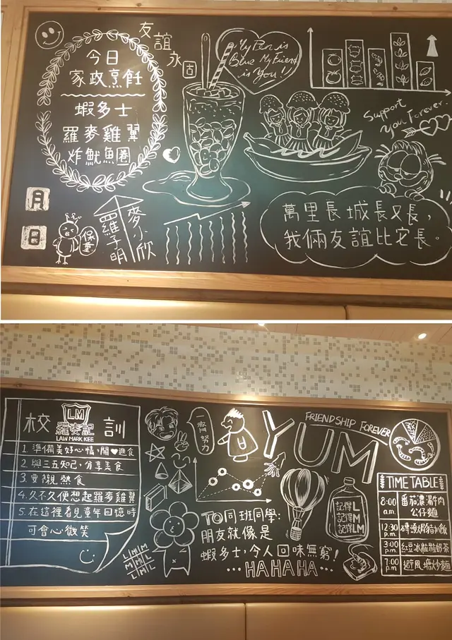 「羅麥記」裝修到好似90年代學校課室咁,好親切。Boar到貼住4大天王、周慧敏相片。仲有黑板,寫嘅都係關於食物,特別嘅裝修,有別於一般茶餐廳。個人認為佢係「美心香港地」,唔係裝修,係菜式,比較一般茶餐廳sharp。味道又差唔多。,價錢平$5-$10。蟲草花茶樹菇湯 - 蟲草花、茶樹菇、豬骨,湯濃、料足,好正。好味到我想返屋企自己試煲。晚飯套餐包埋,但一啲都無馬虎。可以揀湯/飲品,好在兩個都揀晒湯。韓式辣醬椰菜炒豬頸肉 - 好特別,用韓式辣醬炒,味道都好夾。椰菜爽,豬頸肉淋,好入味。又係想要自己試做。咕嚕魚 - 咕嚕肉嘅味道,好惹味,配魚都好夾好好食。查看更多