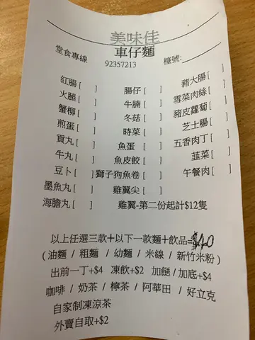 以串烧驰名的小食店。特别推介猪腩肉、鸡软骨及花枝丸,小店亦提供车仔面。