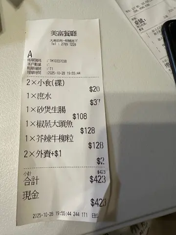 夜晚6:30嚟到已经座无虚席,咁热闹应该唔差,于是就坐低试下先😋店员好热情招待,介绍佢地庶水,真材实料自己店煲,咁就要饮啦👍真系唔错,够冻,有竹庶茅根红罗白甜味,天然材料甜,正👍服务态度好,价钱又经济,碟头又足,下次要嚟试蒸气火锅🍲✨砂煲生肠🐷上枱听到嘟嘟声,好有获气,热辣辣,闻到好香疆葱蒜香味😋生肠冇腥味,咬落好易咬开,唔会觉得硬,成煲食到停唔到口。✨芥辣牛柳粒🥩一睇菜牌就好想叫,因为觉得几特别,未食过这种煮法,冇失望,劲好食,芥辣炒牛柳原来味道好夹,牛柳粒又林又好食🤤✨刴椒蒸大鱼头🐟好大一个鱼头😍刴椒辣辣地好嘢味😋有时候食鱼都怕腥,但今晚俚个鱼头一啲都唔腥,好鲜美,鱼云滑滑😋都系喜欢菜馆,又唔洗加一,又即叫即炒,够晒获气,肯定唔会食到预制菜👍…查看更多