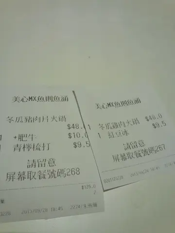 美心在云云的快餐店中,总觉得美心相对于大家乐及大快活的名气有点落后,但其实却以美心的食物选择较多。星期日的下午茶时段,附近食肆不多,于糖厂街中的多间食肆均于星期日休息。于大家乐及美心中作选择,无论价钱及选择方面均以美心较优胜。但美心却位于一楼,没有电梯,相对较不方便。2人order:至抵食便当$22(罗宋汤三色螺丝粉、肉酱薯蓉、鸡翼)冻绿茶宾限定餐$20 (绿茶宾x烧鸭濑粉)至抵食便当以日式便当概念为主,便当盒一格一格,分别配上多种不同食物,每一份都细细件,但适合一次过品尝多样食物的人!由于食物款式多变,而价钱亦便宜,十分抵食!今次的便当就有:罗宋汤三色螺丝粉、肉酱薯蓉、瑞士鸡翼、沙律、粟米马蹄糕。当中螺丝粉软硬适中,罗宋汤味道香浓,配有椰菜等,十分入味。但一小碗的螺丝粉,已放于便当中最大一格,有点充撑场面之嫌!一小杯的沙律,用上红萝卜、薯仔再加入沙律酱,味道一般没有特别。肉酱薯蓉卖相不俗,但份量偏小,用上迷你锡纸盘装著,不消几口就已吃完,肉酱味道甜甜地,与薯蓉同吃味道相夹!瑞士鸡翼只有一般的豉油味,令人费解跟瑞士有何关系,绝不是用上瑞士汁,有点失望。而粟米马蹄糕味道不错,甜度适中亦不会富硬实的口感。整体中规中矩。餐茶---热咖啡配上咖啡机即冲热咖啡,咖啡味香浓,但口感不够幼滑,味道不过不失。总比一般茶餐厅中人手冲制的味道较佳。冻绿茶宾限定餐一碗烧鸭濑粉原价已$17,额外配其他饮料需加$5-8,因冻绿茶宾为新饮品,所以以$20优惠价作为推广实在相当便宜!烧鸭濑粉拿著餐盘已是一个惊喜!烧鸭脾呀!一般而言,烧鸭脾属较贵的部分,在外面的烧腊店吃一个烧鸭脾饭就可能索价$30-40,实在想不到$20也可品尝到呢!烧鸭脾浸于汤上,稍微破坏了鸭皮表面的香脆口感,而鸭脾中的油份渗透于汤面中,显得较为油腻。鸭脾烧得十分出色,色泽对版红中带金,肉质嫩滑啖啖肉,相当满足!而濑粉煮得有点林,而且剪得过碎,虽然吃来比较方便,但口感差了一点点。冻绿茶宾个人不太欣赏的味道,利宾纳配上冻绿茶,以利宾纳作主导加入淡味的冻绿茶,利宾纳的甜度因而被冲淡,但所产生的”火花”非人人可以接受,虽然可同时饮得到两种味度,但就是有点怪怪的,最后还是未能整杯喝完。环境:经稍微装修后,原本近门口的卡位及内里原有的数张有电视收看的长枱均已转回普通的四人枱,位置更多更为密集,顾客的用餐舒适度亦同时下降了,难度这就是大集团的经营之道?
