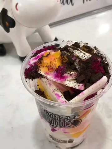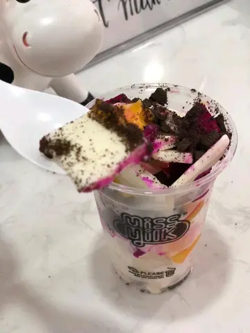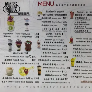 对乳制品真的有很令人著迷的钟爱,香浓的牛奶、芝士、奶油、牛油、乳酪酸奶、中式的炖奶、炸水牛奶等。为保存容易腐坏的乳制品人类自很久以前都已经发展出很多种的方法,多有趣!但吃过很多很多种后,炒酸奶块真的没有试过!想不到今天竟然在佐敦试到了这种新奇的吃法!Miss Milk整家店都是以酸奶为主题,所以对我自言有种吃雪糕的兴奋,不知道应该点上那一款。我们点了抹茶酸奶奶昔和Super酸奶杯各一杯。抹抹酸奶奶昔其实就真的像杯奶昔,浓浓的冰冻酸奶下有阵淡淡抹茶香,很解暑。Super酸奶杯反而像是杂果乳酪,因为是比较浓稠的酸奶,是吃的而非喝的,有很丰富的杂果亦很饱肚,是女生必点!重点来了!炒酸奶块!哈哈抱歉原本我们是点的酸奶卷,因为在外地有吃过觉得口感如雪糕卷很精彩,但刚好今天没有,所以一试这个没什么概念的酸奶块。但很惊喜,酸奶块真的是一块块小小的酸奶砖,上面有杂果混合了一起急冻凝结,吃起来比雪糕卷有过之而无不及!…查看更多